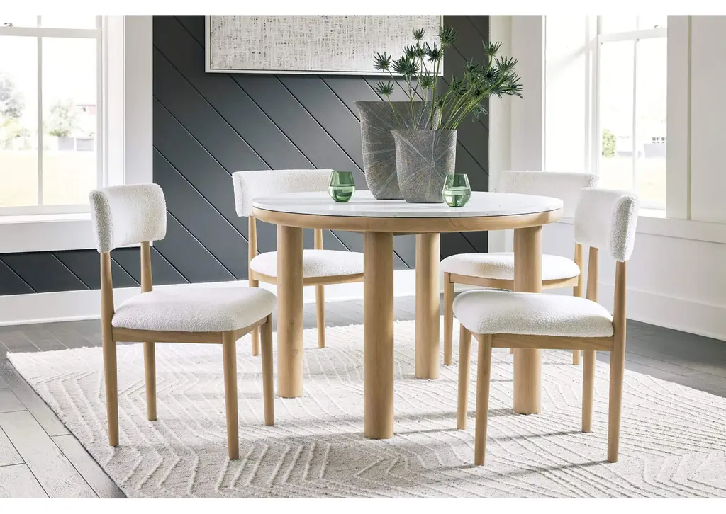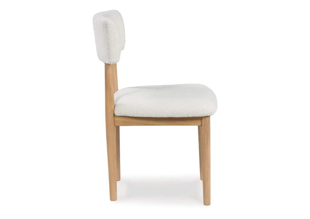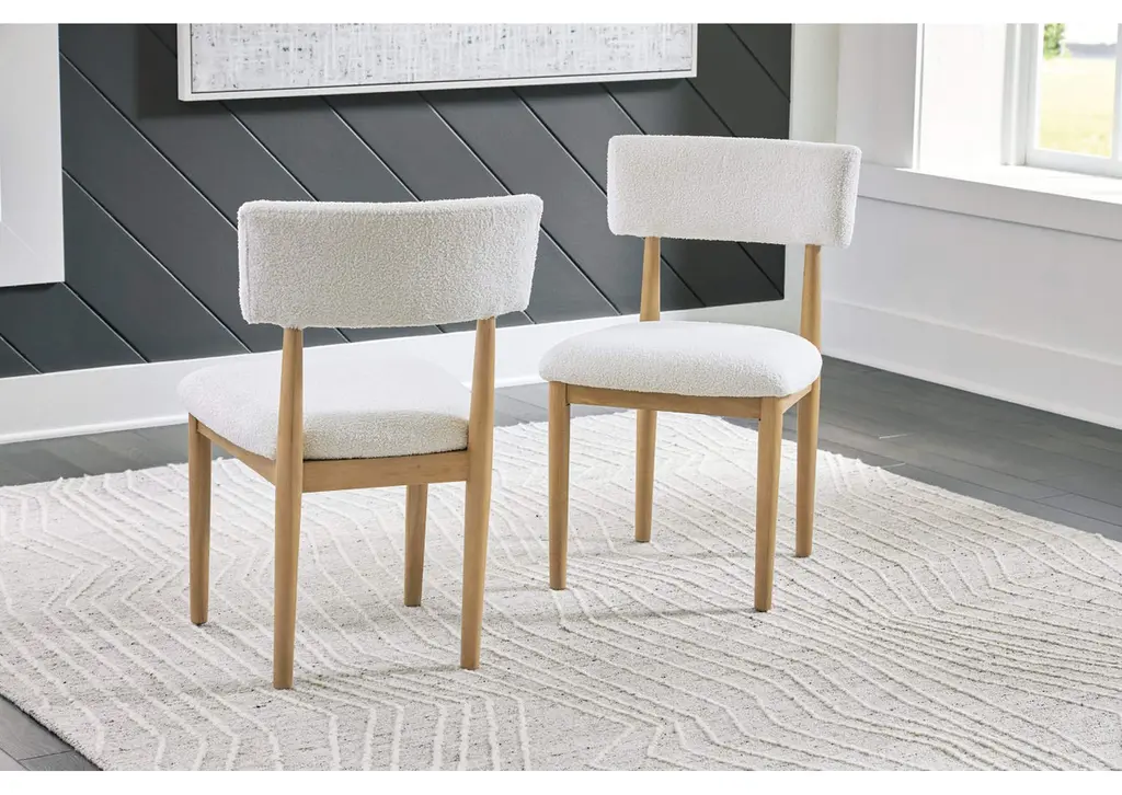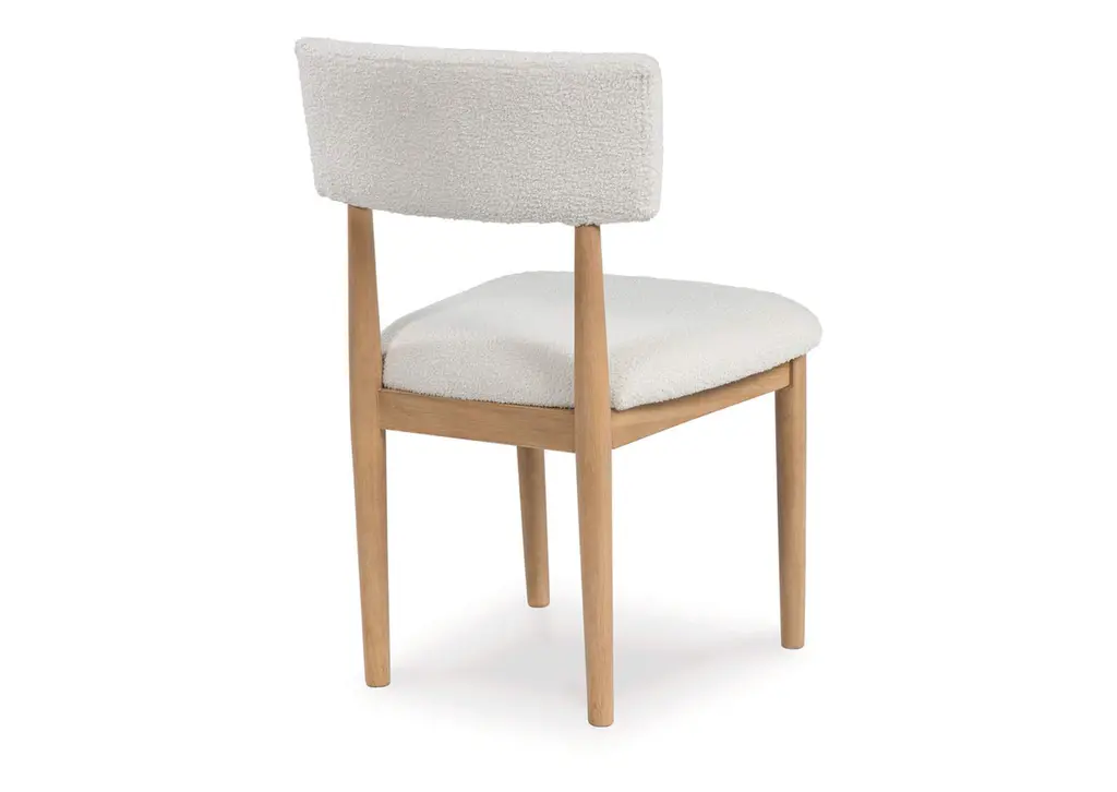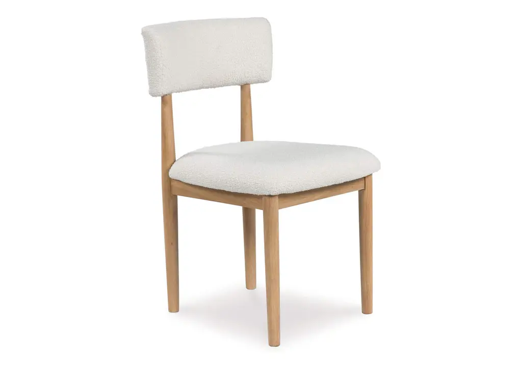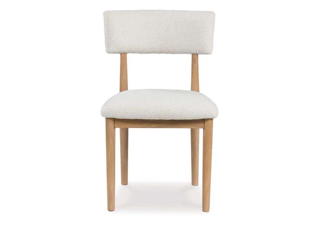 Clean lines meet cool curves with the Sawdyn dining chair. Simple round post legs and a natural finish lend a modern vibe, while softly textured upholstery tempts you to sit and stay awhile. What a delicious choice for a dining room update. Weight 20.000 lbs. (9kgs.)