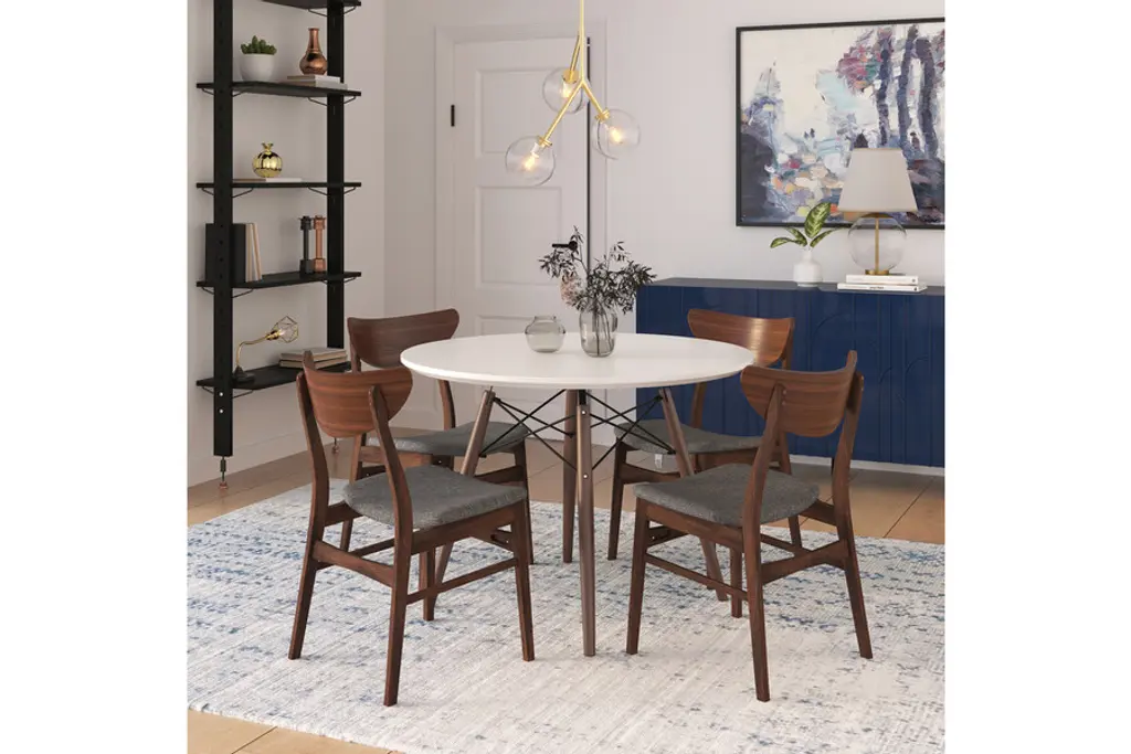 Named for its inspiration, the Scandi Dining Chair features a distinctly Danish design that borrows from the likes of iconic designers like Hans Wegner and Finn Juhl. Its organically shaped wood frame and back are beautifully accented by a foam seat cushion upholstered in a tweed-like fabric that just completes the look.