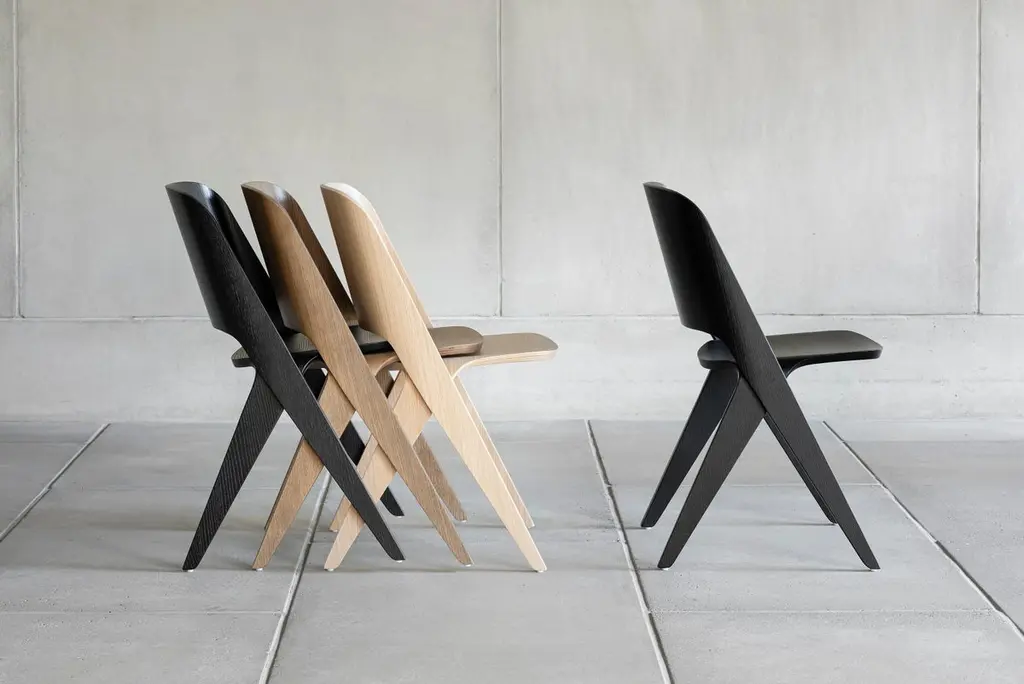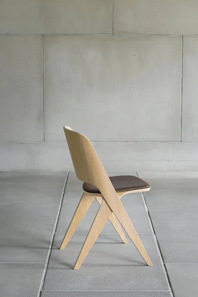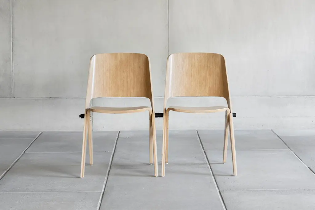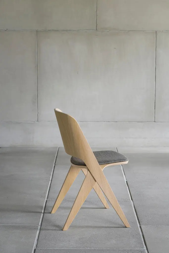 Lavitta Chair by Poiat Designers: Timo Mikkonen & Antti RouhunkoskiCollection Lavitta 2014Model shown: Wood stain - Oak Dimensions: D. 52 x W. 53 x H. 81 The Lavitta Chair is a modern classic that focuses on the sophisticated union of traditional wooden furniture with contemporary design.Designed by Timo Mikkonen & Antti Rouhunkoski of Poiat Studio in 2014 as the first product for Poiat Furniture, the chairs are made of two pieces of moulded plywood and designed to slot into each other for temporary storage.Drawing its influence from the traditional rugged Finnish outdoor furniture, the award-winning Lavitta Collection was designed by Poiat Studio as their first furniture collection for Poiat Furniture.Manufactured in Finland and Estonia, the members of the Lavitta product family are chairs, dining tables, benches and stools. The chairs are made of two pieces of moulded plywood and designed to slot into each other for temporary storage. Lavitta Chairs can be tailored to different spaces with a variety of upholsteries and custom features such as row connectors.