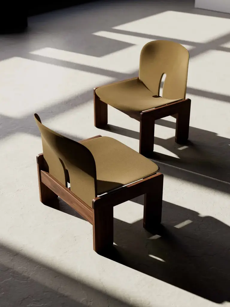 Scarpa 925 is a lounge chair of remarkable elegance, originally designed by Afra and Tobia Scarpa in 1966. It is defined by its solid and robust solid wood frame, which creates a striking contrast with the lightness of the upholstered seat and cantilevered backrest.For the 2025 Salone del Mobile, the Scarpa 925 lounge chair has been reimagined with full fabric upholstery, offering enhanced comfort and a refreshed material expression.The anatomical design of the seat, combined with the natural flexibility of the cantilevered backrest, ensures a seating experience that is both refined and ergonomic. Even in this updated version, the chair retains its iconic identity, elevated by the quality of its materials and attention to detail.Designed alongside the elegant Scarpa 121 dining chair in 1965, the Scarpa 925 shares the same double trestle base with signature rounded joints, a hallmark of the Scarpas' design language.Both models are now part of the Karakter collection.Materials:– Frame: Solid ash wood– Feet: Plastic– Upholstery: FabricOn sale from September 2023