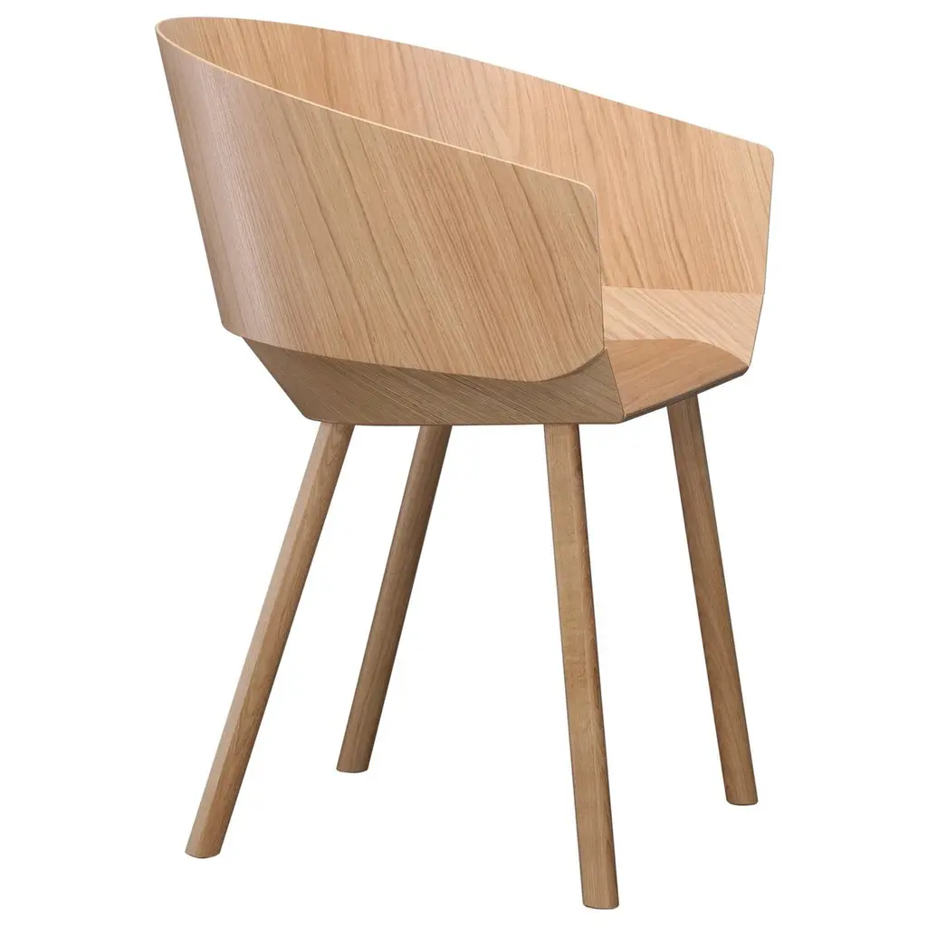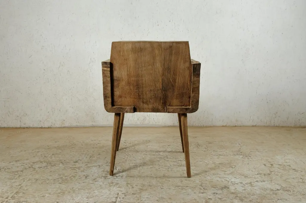 Sculpted Armchair In Solid Oak Wood '4 Legs'