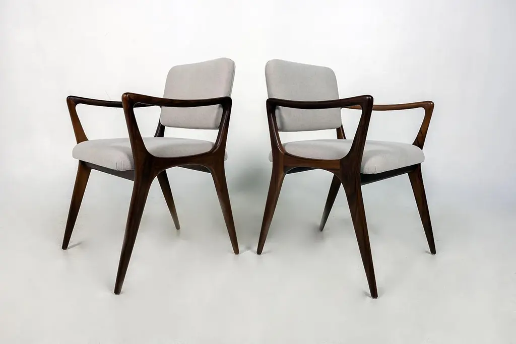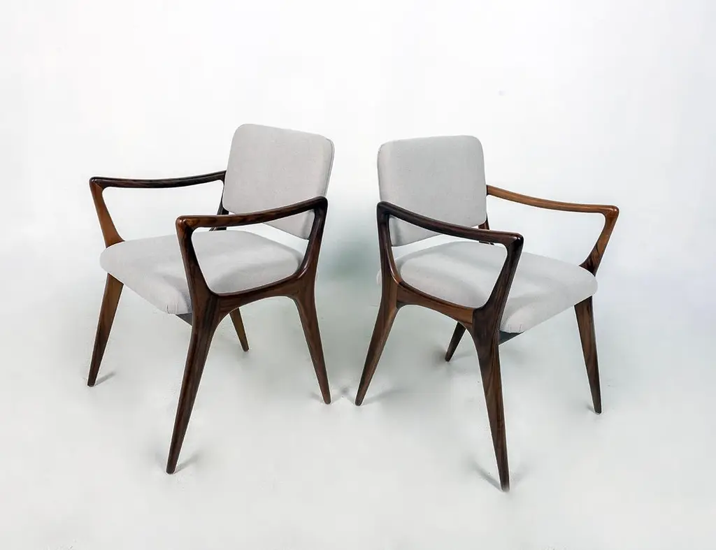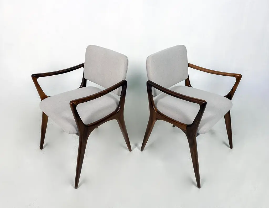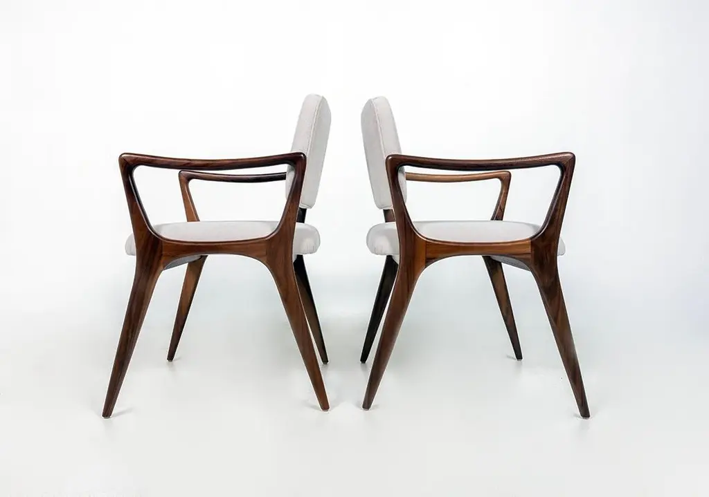 Sculptural Dining Arm Chairs In The Style Of Gio Ponti Walnut
