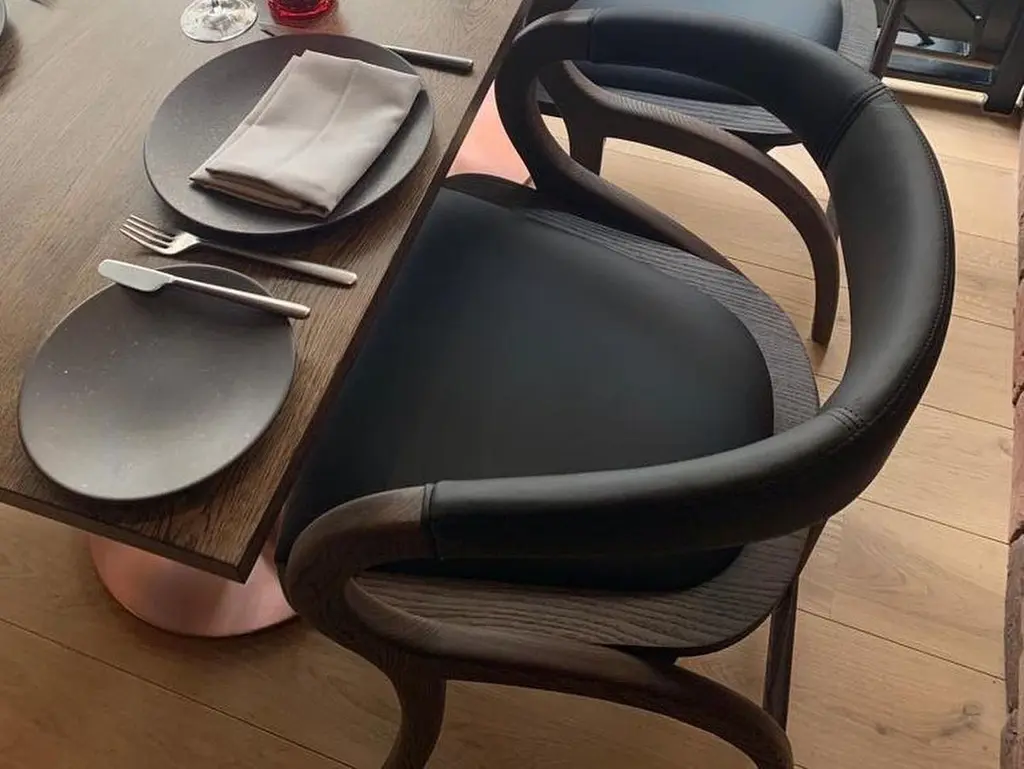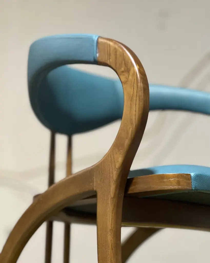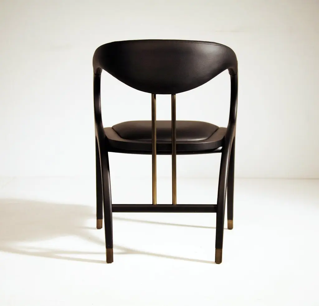 A chair of architectural and sculptural design, crafted from solid wood with a Nubuck leather seat and backrest. Its sleek and flowing design showcases the beauty of wood frame in white lacquer 01. The leather seatcan be customized with the customer's own leather or fabric, or chosen from our collection. The price listed is for the chair with fine Nubuck leather as shown. Additionally, it can be made with other wood species and custom lacquer colors upon request.Dimensions: 61 W x 57 D x 79 H cm.Seat height 48 cmArm height 73 cm.“Minimum order of 4 chairs.”Contact us to enquire about COM/COL production, requirements and material shipping instructions.Please contact us if you have any questions about customization and pricing. We will be glad to check with the factory’s technical team if sizes, finishes, and colors can be customized. We do our best to expedite production and to ship and deliver product within the listed lead time, however current lead times might be longer due to global shipping backlog and delays. These delays are out of our control and cannot be a reason to cancel an order.