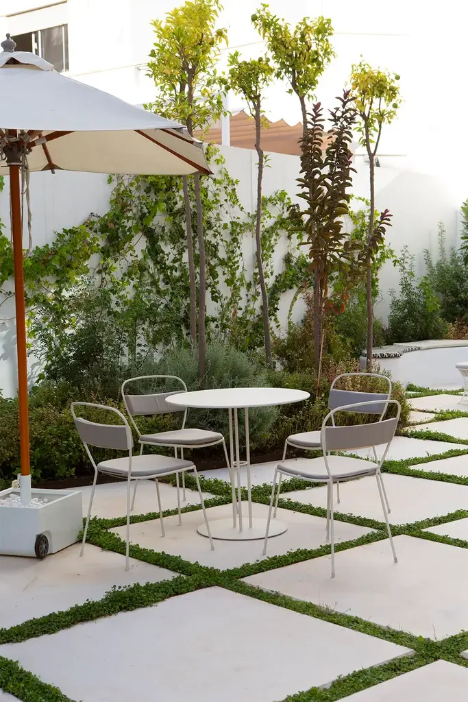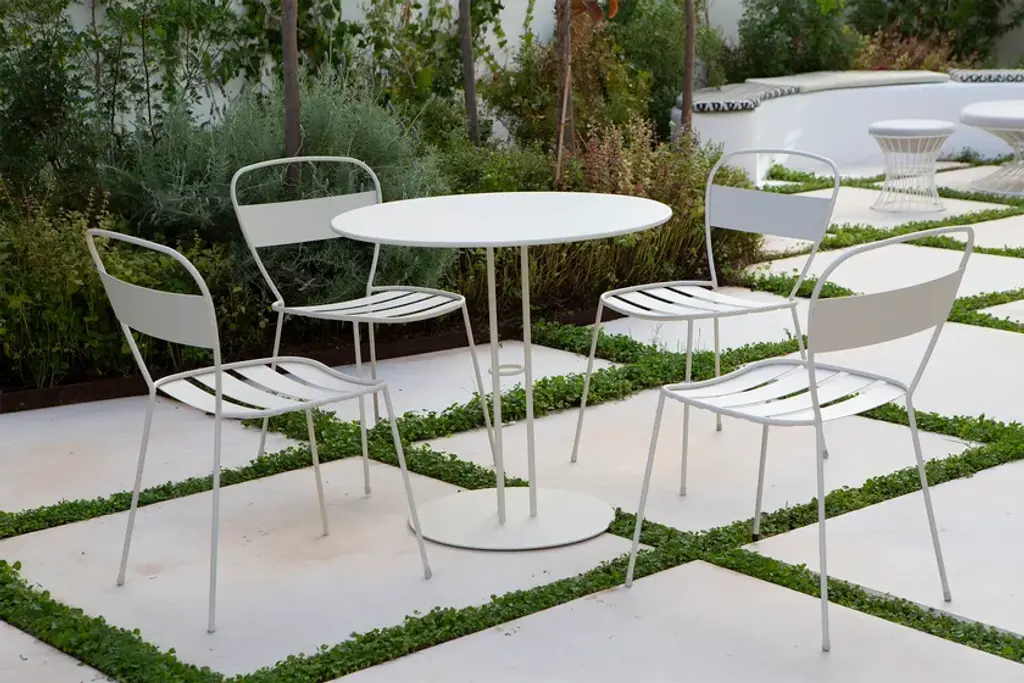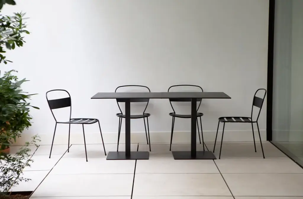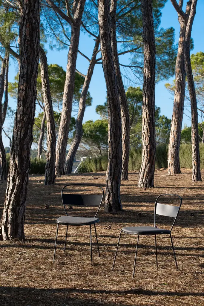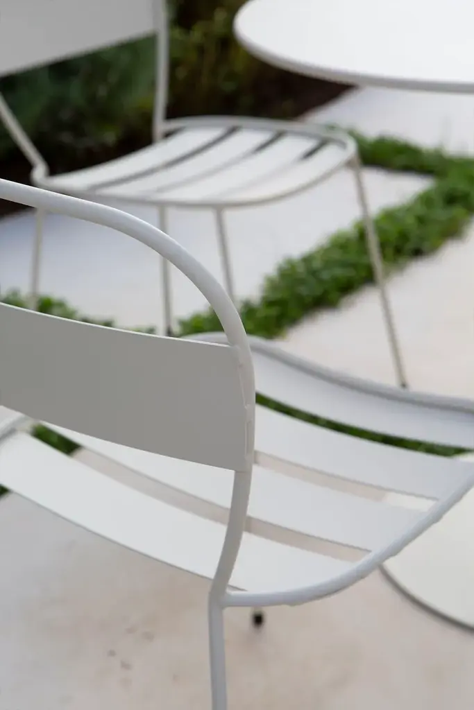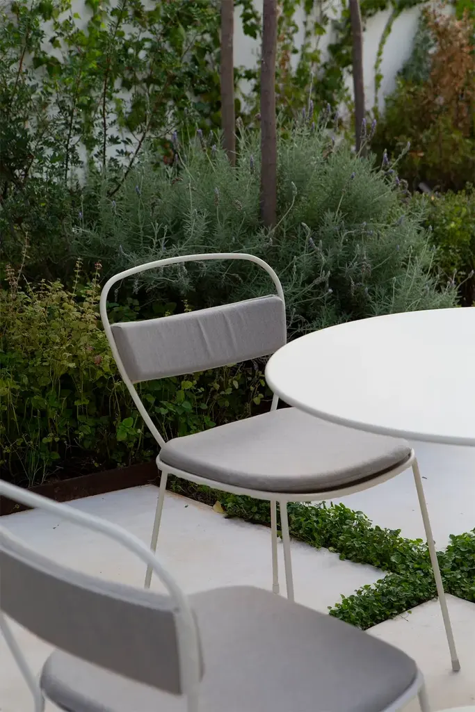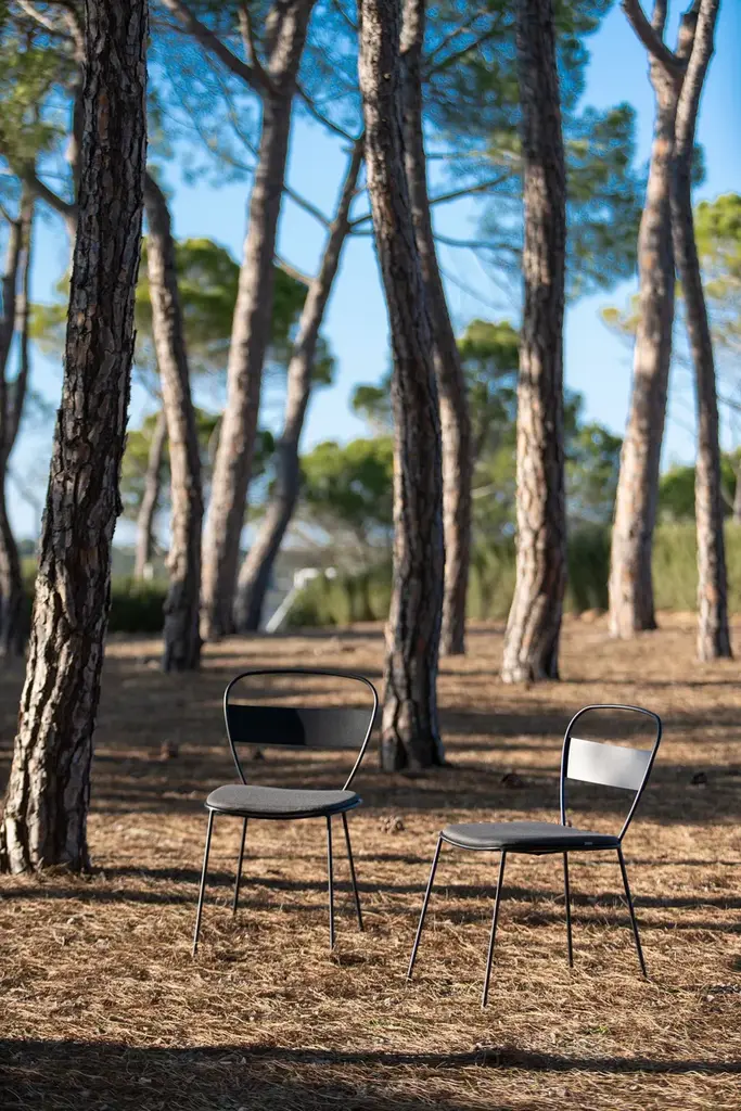Sedna is a garden chair made of powder-coated galvanised steel.The Sedna collection is inspired by a female deity of the sea, whose meaning is ‘mother of the sea’. Sedna is a versatile collection, capable to adapt to multiple spaces and projects, both indoors and outdoors. Its delicated shapes create an elegant and simple silhouette, made of a galvanized steel frame and water-resistant upholstery.