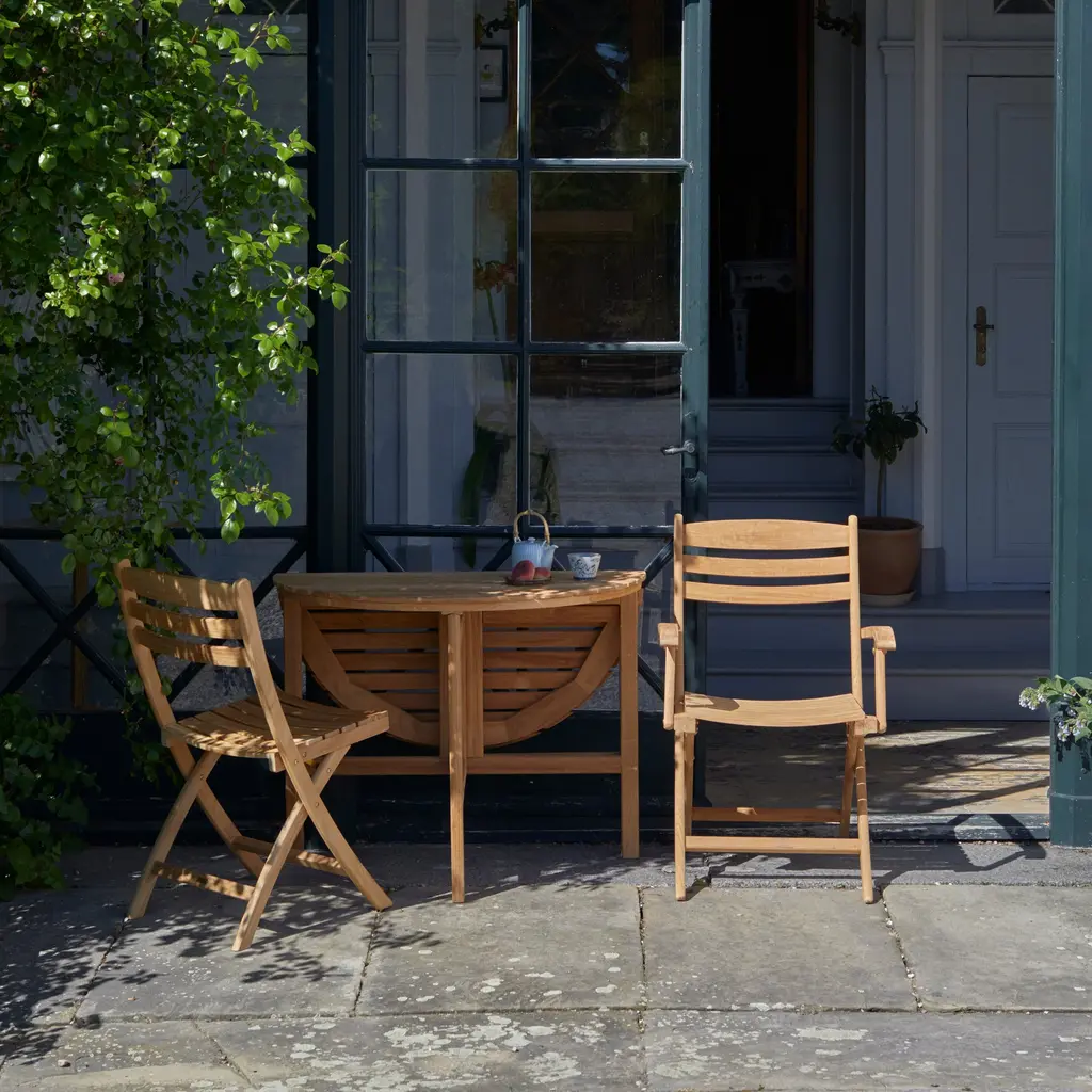 An ever-handy chair for dining or extra seating, foldable Selandia easily goes anywhere it’s needed. Skagerak’s chair attractively embodies both a well-crafted Nordic practicality and soupçon of French style. Assuredly crafted in solid teak, it suits outdoor spaces from balcony to backyard —and takes up nominal space when stored.