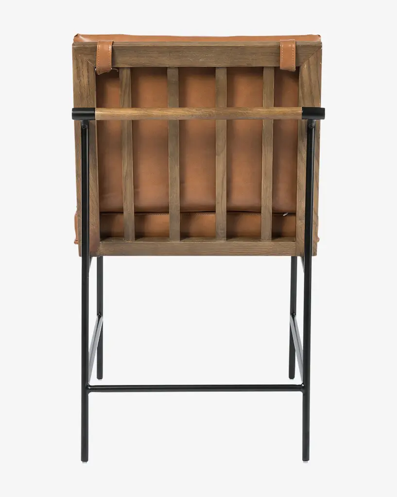Clean and straightforward, the Selas Dining Chair has a slender frame of black-finished iron and a floating ladder back of black, solid parawood. This frame holds cushions upholstered in high-performance fabric, with rear fabric handles that bring a thoughtful finishing touch to the piece.