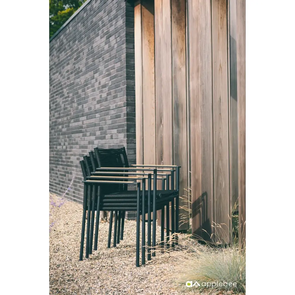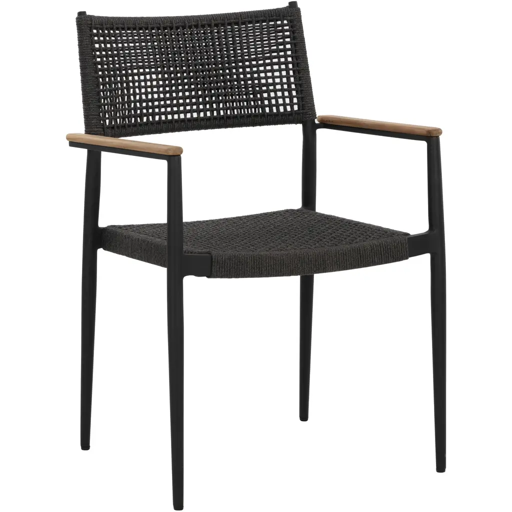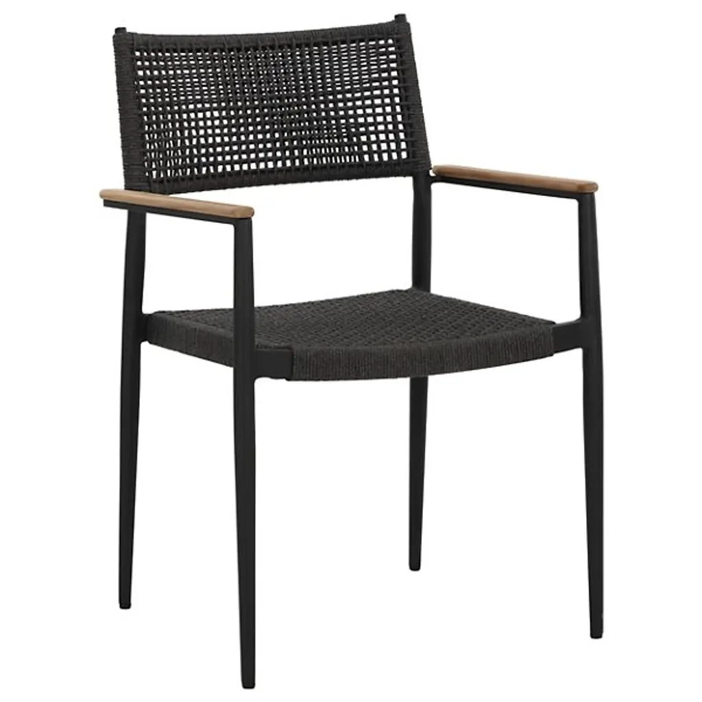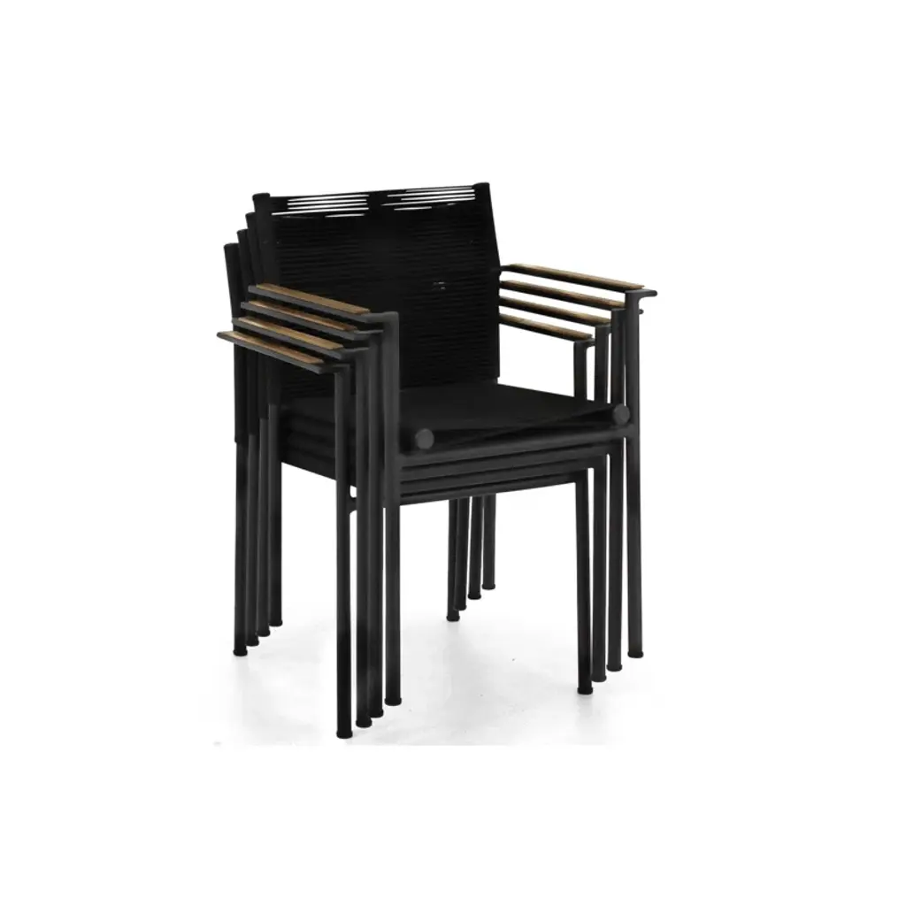 Selene Aluminum Stackable Dining Arm Chair With Teak Arm Rest