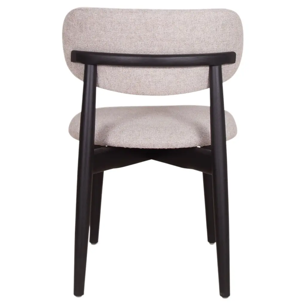 The Selene chair brings the comfort of sofa-inspired design to your dining area, featuring gentle contours and soft, rounded lines. Its round legs and stylish horizontal wooden crossbar support the elegantly curved, upholstered back, adding both style and stability. A cute addition to any home office, workspace, or hobby room. Its thoughtful back detailing and refined construction make this chair a charming and versatile addition to any room. Features: Hand-sanded, finished, and upholstered. Slight back curvature. Sleek back cross bar.