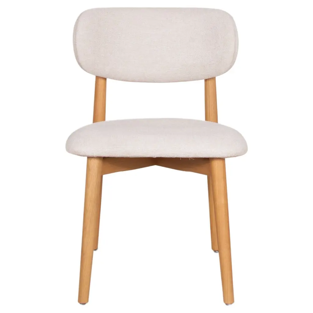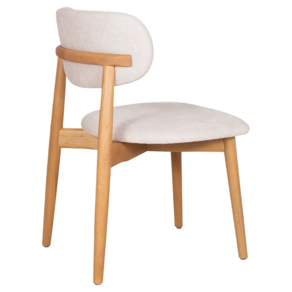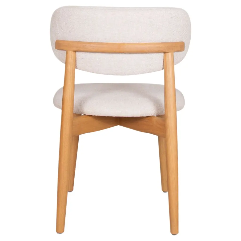 The Selene chair brings the comfort of sofa-inspired design to your dining area, featuring gentle contours and soft, rounded lines. Its round legs and stylish horizontal wooden crossbar support the elegantly curved, upholstered back, adding both style and stability. A cute addition to any home office, workspace, or hobby room. Its thoughtful back detailing and refined construction make this chair a charming and versatile addition to any room. Features: Hand-sanded, finished, and upholstered. Slight back curvature. Sleek back cross bar.