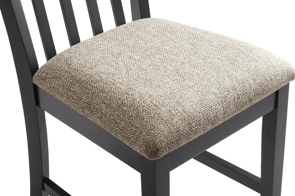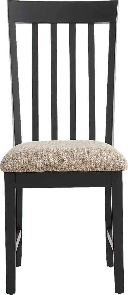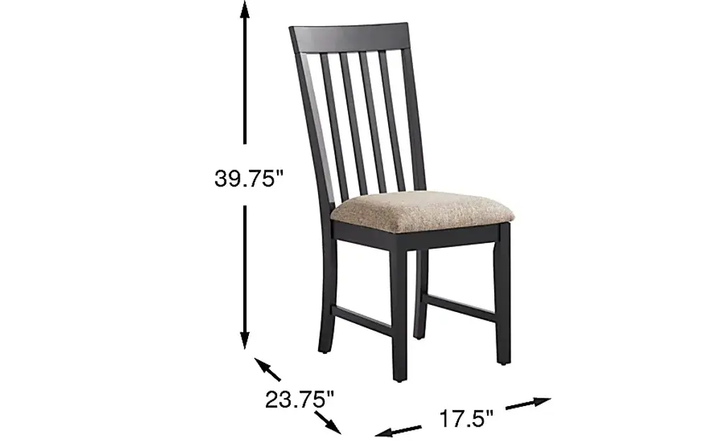 Reminiscent of the sun's soft light dancing on a calm lake, the Senatte collection brings nature's charm indoors with a cozy glow and delightful nod to craftsmanship. Rooted in classic style, this side chair is crafted with oak veneers in a black finish and features a sleek slat back that adds natural charm. The textured upholstered seat cushion in a rich beige softens the piece and provides a balanced contrast.