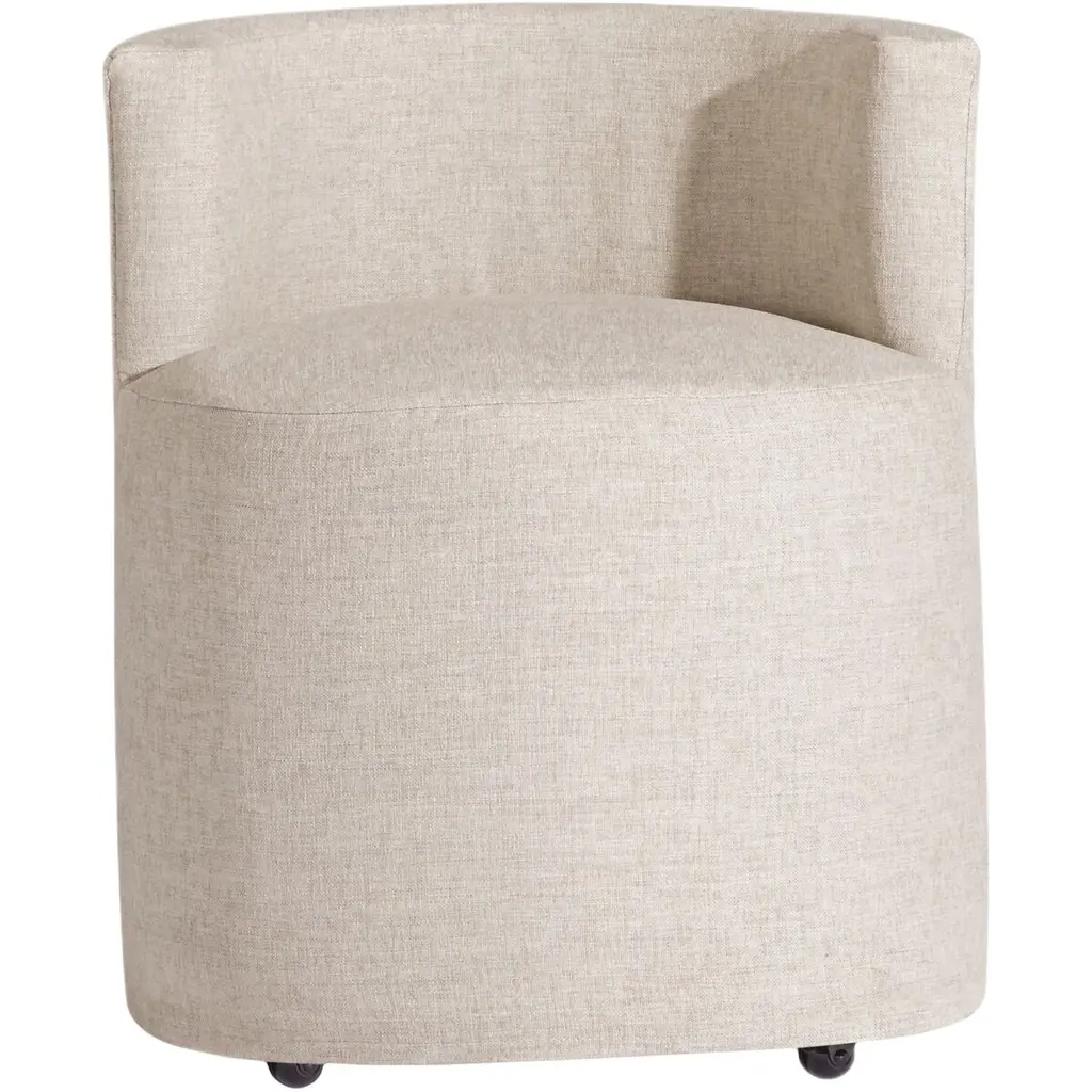 Indulge in the timeless elegance of the Serava slipcover dining chair, a masterpiece of design that effortlessly marries form and function. Wrapped in a luxurious performance linen-look fabric, this chair exudes a sense of refined sophistication, inviting you to linger at the dining table long after the meal is over. The upholstery, crafted by the esteemed Valdese Weavers, offers a tactile experience that is both soft and durable, ensuring that the chair remains a cherished part of your home for years to come. Beneath its graceful exterior, the chair features hidden gliders, allowing for smooth and silent movement, adding to the serene ambiance of your dining space. The Serava slipcover dining chair is more than just a piece of furniture; it is a testament to the art of fine living, promising to elevate your dining experience to new heights of comfort and style.