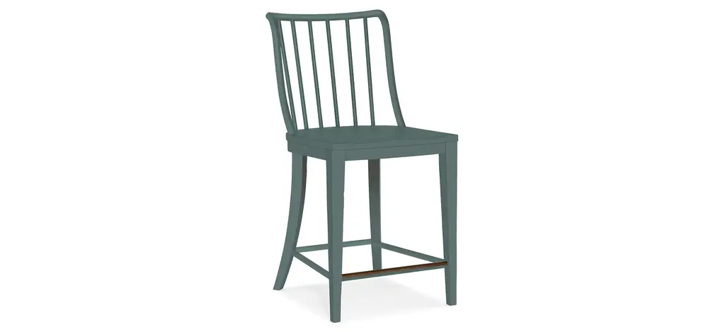 Designed to create a comfortable and inviting retreat within the home, the Serenity Lee Counter Chair is defined by its casual finishes and variety of organic textures and materials that combine to deliver a relaxed aesthetic. Inspired by casual, waterfront living, the collection was designed to bring the relaxed aura of the outside in. White oak veneer delivers two key finishes, a whitewashed look and a weathered gray and is accented with shades of soft coastal blue, sand blasted pine and soft white bronze metal details.