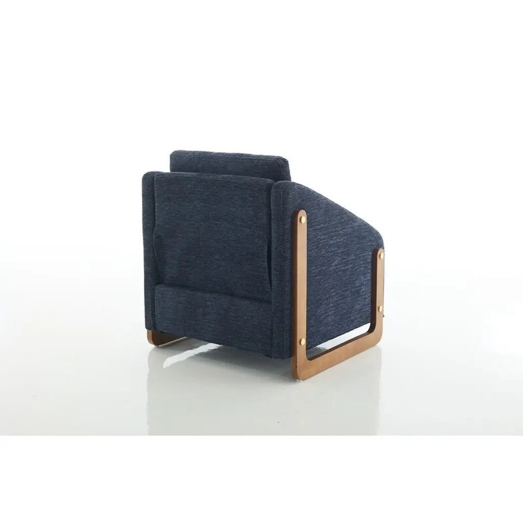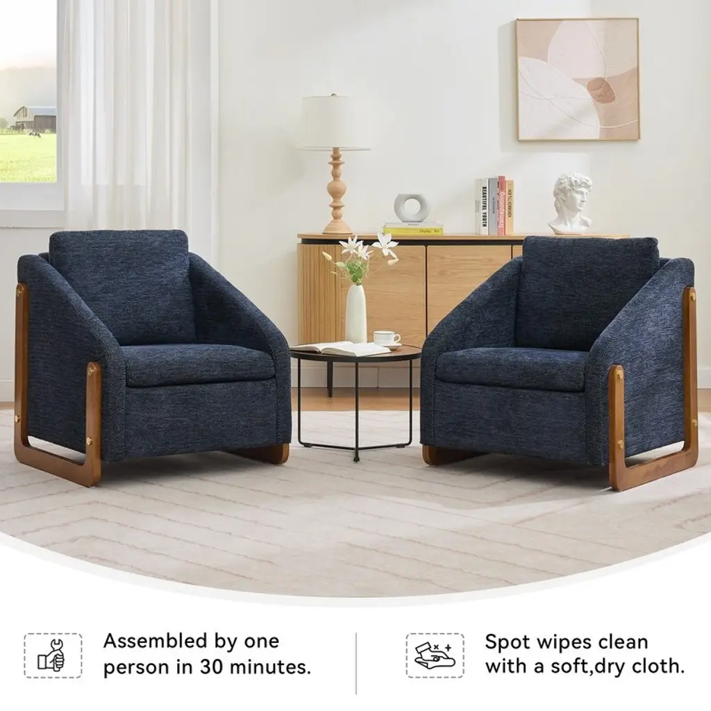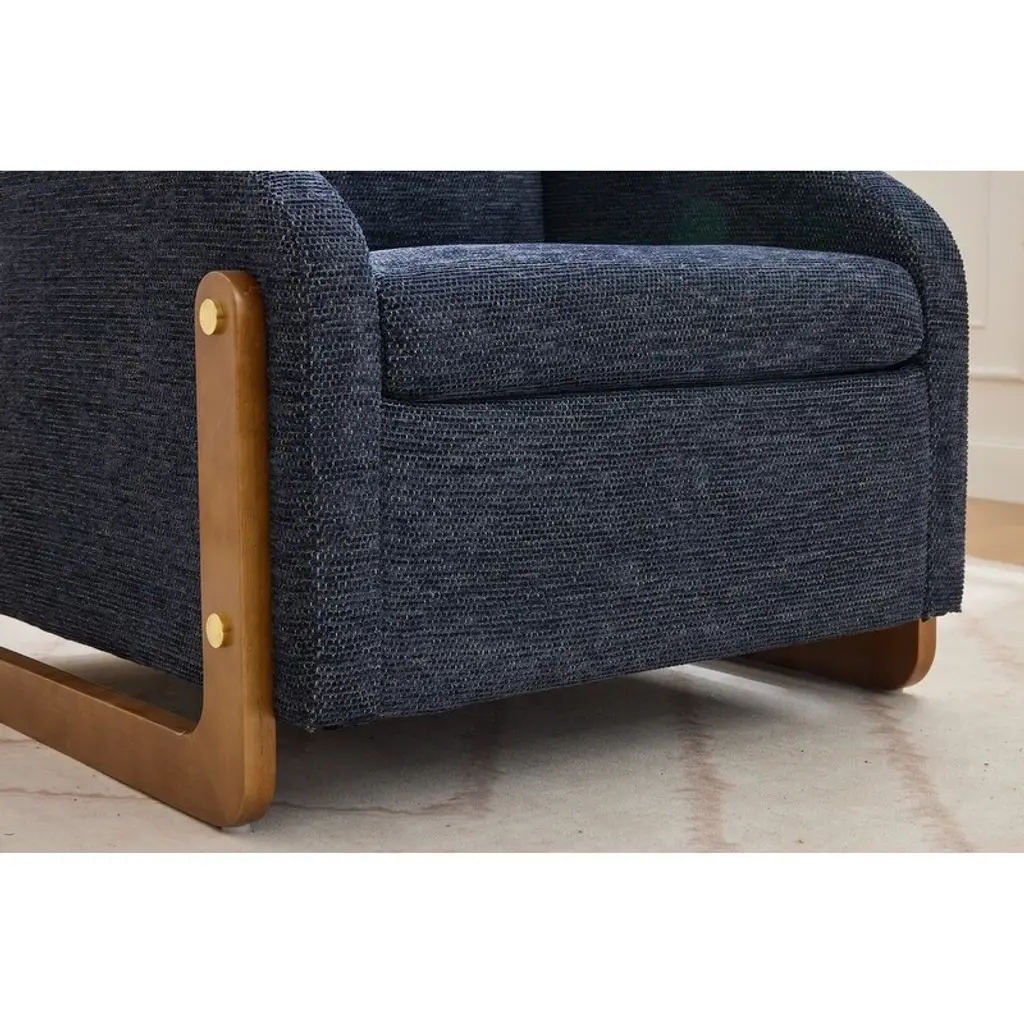 Set Of 1 Chenille Fabric Modern Upholstered Armchair With Wooden Side Frame , Accent Leisure Chair With Cushioned Seat - Blue