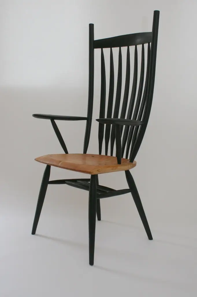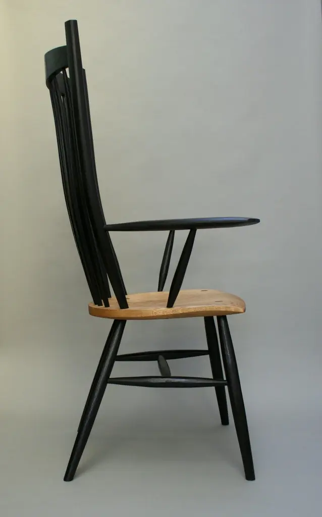 Made to order set of 10 bent chairs by German Woodworker Fabian Fischer. (2 arm and 8 side chairs) Made in the tradition and quality of American Studio craftsmanship. The price reflects the chair made in oak but can also be made in cherry and walnut for a 10% addition on the price and 20% in elm wood. Also in painted in milk paint and 20% (red or black).