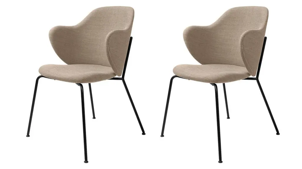 Set of 2 Beige fiord lassen chairs by Lassen.Dimensions: W 58 x D 60 x H 88 cm.Materials: Textile.The Lassen chair by Flemming Lassen, Magnus Sangild and Marianne Viktor was launched in 2018 as an ode to Flemming Lassen’s uncompromising approach and special feel for detail, aesthetics, quality and form. The upholstered seat and back is placed on a geometric frame in powder-coated black metal and the dining chair embraces one’s body, letting you sit comfortably for hours on end.By Lassen is a Danish design brand focused on iconic designs created by Mogens and Flemming Lassen, founded by Lassens’ relatives in 2008. Brothers Mogens (1901-1987) and Flemming (1902-1984) Lassen are known as two of Denmark’s greatest architects and designers. Both were renowned pioneers of Danish functionalism and modernist architecture, honoured with numerous prestigious medals and awards. Headed by Mogens Lassen’s grandson Søren Lassen, By Lassen carries on the brothers’ design philosophy by manufacturing their iconic designs as well as products by other designers that complement the Lassen’s functionalist style. The company’s mission is to continue the tradition of timelessness, functionality and quality, and to introduce the Lassen’s design heritage to new generations.