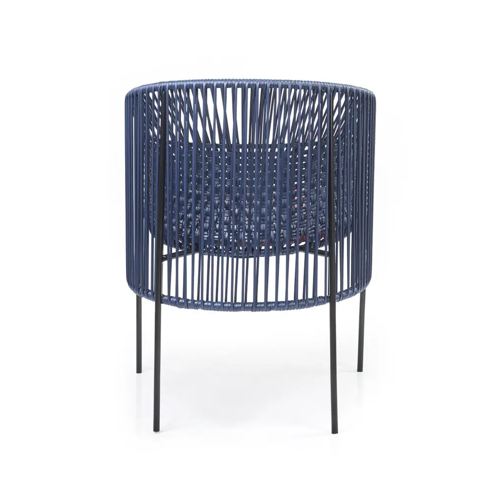 Set of 2 blue caribe chic dining chair by Sebastian HerknerMaterials: galvanized and powder-coated tubular steel. PVC strings are made from recycled plastic.Technique: made from recycled plastic and weaved by local craftspeople in Colombia. Dimensions: W 55.3 x D 56 x H 75 cm Also available colors: blue/ mint/ black, mint/ green/ black, orange/ rose/ curry, green/ rose/ curry. The Caribe chic dining chair is an elegant design by Sebastian Herkner and can be used inside and outdoors. It’s part of our Caribe Chic collection, featuring an intricate hand-woven webbing in contrasting earthy, muted shades. The pieces and colors are inspired by the incredible nature of the Colombian Huila region where the serene Tatacoa desert meets the powerful Rio Magdalena.Each armchair is made in Santa Marta, a city on the Caribbean coast of Colombia, by local craftspeople. They weave the PVC strings, which are made from recycled plastic, around a powder-coated tubular steel frame. The weaving technique the artesanos and artesanas use are called Momposino, a traditional method known for intricate patterns. Just the preparation of all the materials takes ten days, while the production of each armchair takes three days.German designer Sebastian Herkner is a long-term collaborator of Ames and has visited Colombia multiple times to experience the country’s cities, nature and people first hand. He also visited many of the ateliers that Ames has partnered with to learn about the unique traditional crafts of Colombia's regions. A sought-after contemporary designer and recipient of many industry awards, he has worked with many international design brands, creating intriguing pieces that showcase his intuition for interesting material, color, and texture combinations.