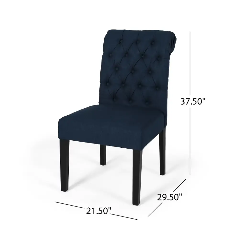 Set Of 2 Blue Tufted Dining Chairs With Rolled Top, Stain-resistant Fabric, And Sturdy Wood Frame-coolbibila