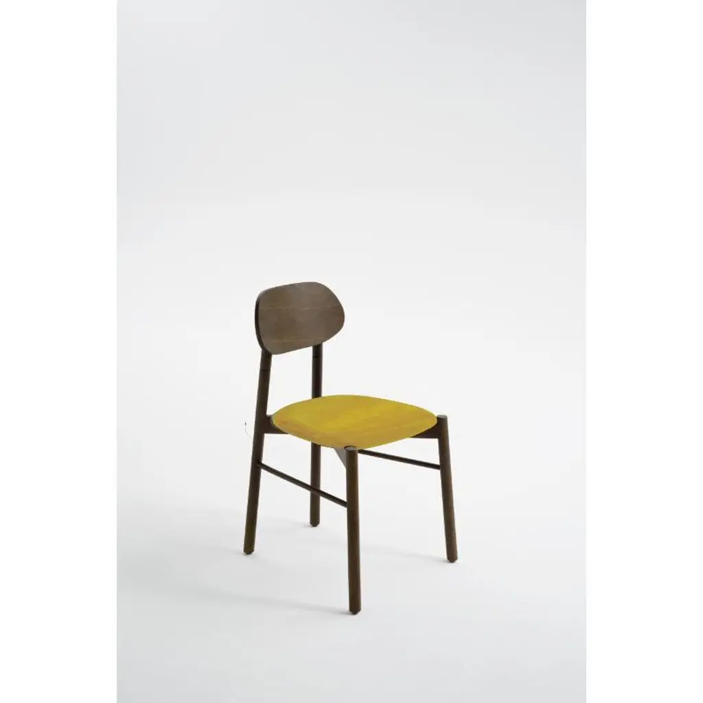 Set of 2, Bokken upholstered chair, Canaletto, yellow by Colé Italia with Bellavista/PicciniDimensions: H 81.7 D 49 W 53.5 cmMaterials: Canaletto Walnut Finishing, Padded seat - Cat C: VelvetforthyAlso available: COM fabric, fabric cat a, fabric cat b, leather cat p, and natural beech, beech structure stained, gold or silver leafaTC: C.O.M. fabric - send us your own materialCA: Cat A - Angel (polypropylene), Ganesha (synt. leather), Nord Wool (felt)CB: Cat B - Tiffany (polyester), Lana (aquaclean)CC: Cat C - Velvetforthy (Velvet), Topia (wool), Novum (Wool), Opera (felt)CP: Cat P - Milano (full grain leather)An essential chair in the form yet precious in colors. Tapered and elongated, the legs of the seat are inspired by the bokken, a wooden replica of the Japanese sword used in the training of the Japanese martial art of Aikido and Kendo. Bokken chair is characterized by the backrest in precious colors: blue aquamarine, ruby red off-white, anthracite, and authentic gold or silver leaf, to match the structure of natural or walnut dyed beech wood. These chairs are customizable like all the brand’s products to meet the specific demands of the contract sector.Colé is a young Italian design brand, with a high-end production 100% made in Italy. Born from the experience of Matteo De Ponti, architect, who grew up in one of the most outstanding Milanese design families, and the artistic sensibility of Laura Macagno, degree in Economics and passionate of art and design. Our mission is to create design icons, beautiful and comfortable pieces that can stand the test of time, furnishing houses of international and sophisticated clients, and realized with craftsmanship, thus unique. “We love objects which own deep roots, excellent quality, and a strong evocative power. Archetypal forms dressed with new beauty without losing their classical composure”.Our expressive research is inspired by the utopian force of Italian eminences grises architects and designers of the ’50s, the Scandinavian design, the Bauhaus, ethnic handcraft and houses of famous writers of the XX century, all different as a style but united by the intense soul of those who worked and lived there.
