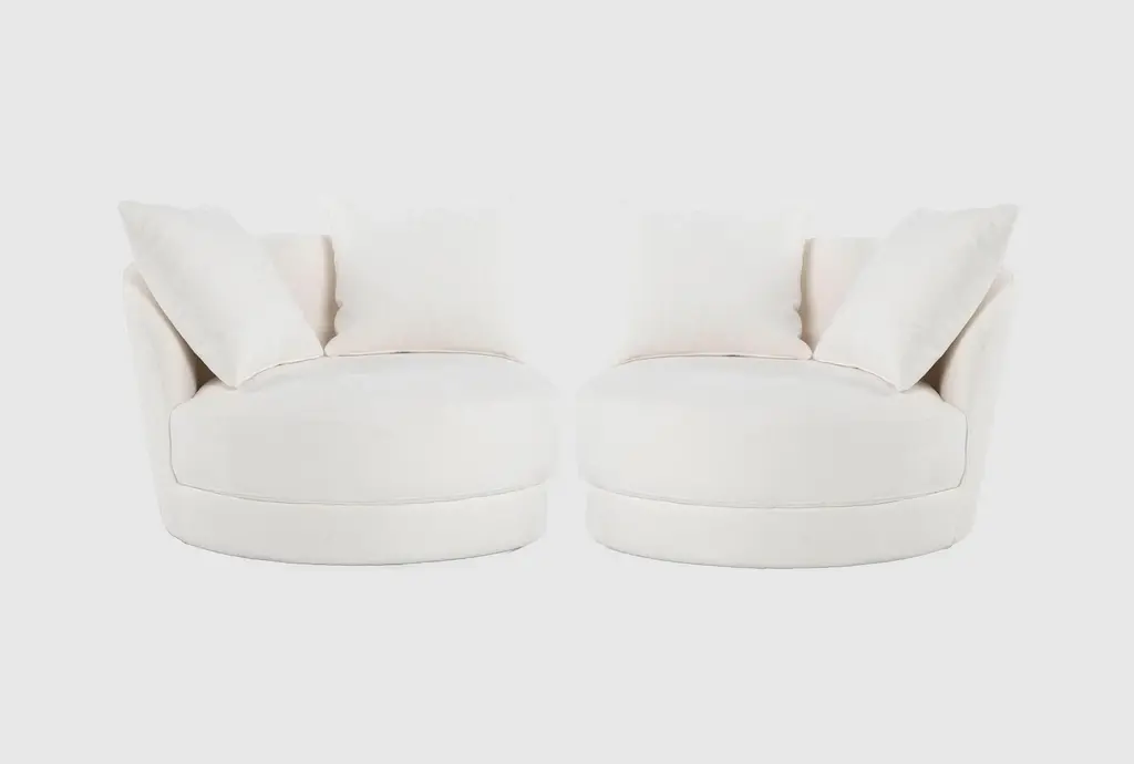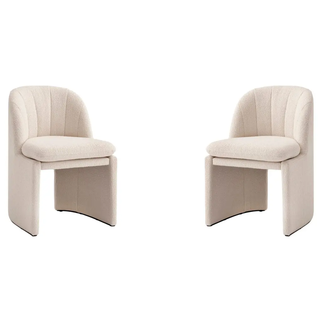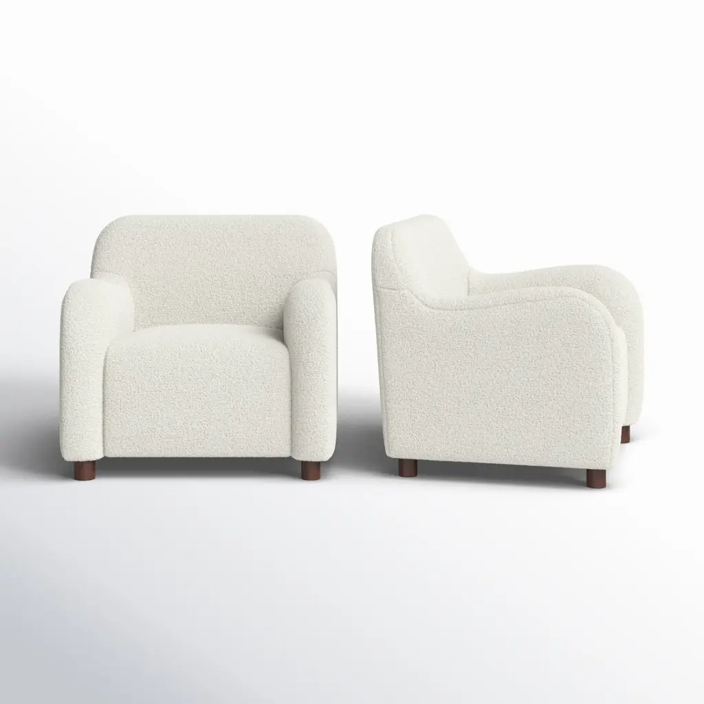 Set Of 2 Contemporary Armchairs With Curved Design, White Boucle/cream Velvet