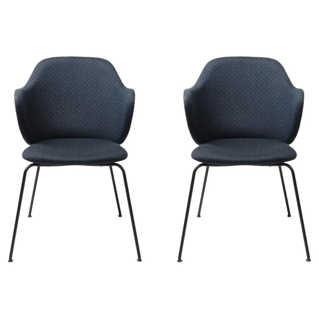 Set of 2 dark grey Jupiter Lassen chairs by LassenDimensions: W 58 x D 60 x H 88 cm Materials: TextileThe Lassen Chair by Flemming Lassen, Magnus Sangild and Marianne Viktor was launched in 2018 as an ode to Flemming Lassen’s uncompromising approach and special feel for detail, aesthetics, quality and form. The upholstered seat and back is placed on a geometric frame in powder-coated black metal and the dining chair embraces one’s body, letting you sit comfortably for hours on end.By Lassen is a Danish design brand focused on iconic designs created by Mogens and Flemming Lassen, founded by Lassens’ relatives in 2008. Brothers Mogens (1901-1987) and Flemming (1902-1984) Lassen are known as two of Denmark’s greatest architects and designers. Both were renowned pioneers of Danish functionalism and modernist architecture, honoured with numerous prestigious medals and awards. Headed by Mogens Lassen’s grandson Søren Lassen, By Lassen carries on the brothers’ design philosophy by manufacturing their iconic designs as well as products by other designers that complement the Lassen’s functionalist style. The company’s mission is to continue the tradition of timelessness, functionality and quality, and to introduce the Lassen’s design heritage to new generations.