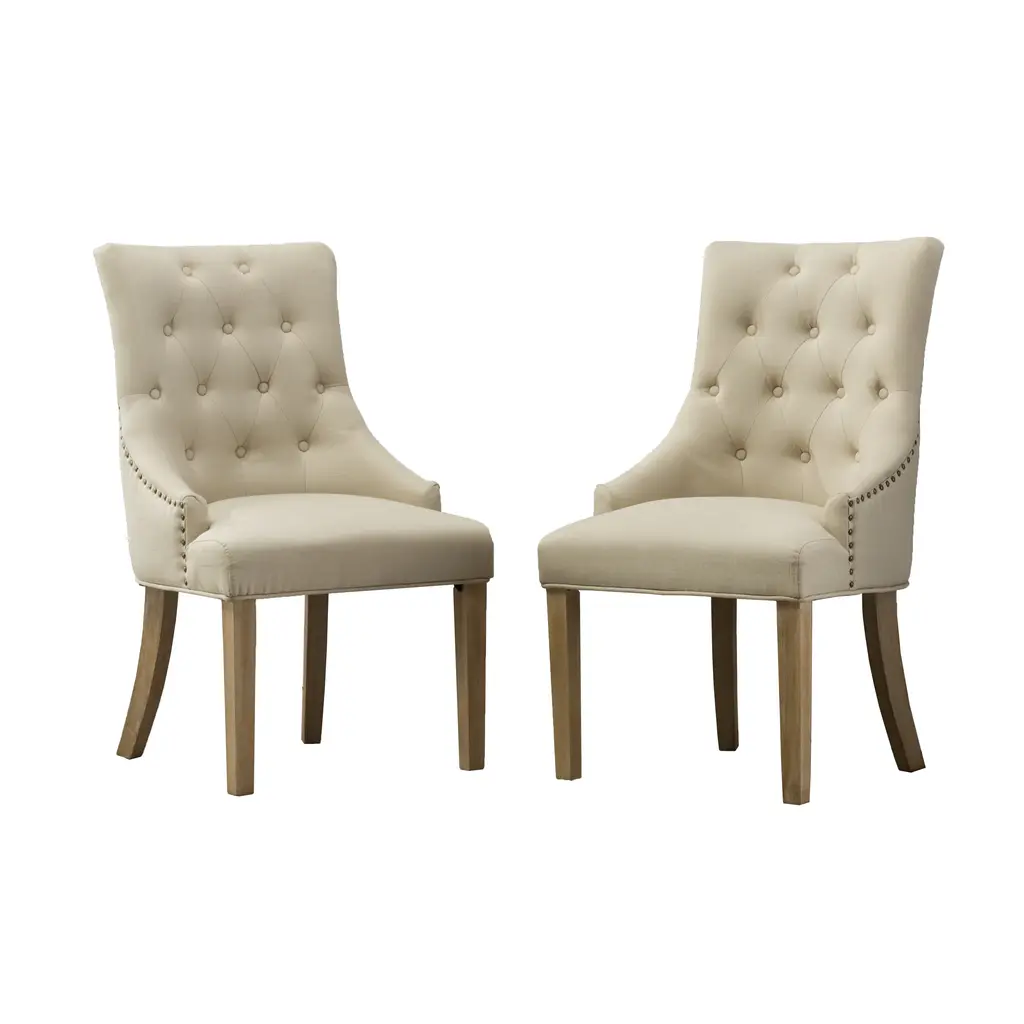 Dimensions: 22W x 25D x 35.6H in. (each)Linen fabric upholstery with diamond tufting pattern17.5-in. seat heightSolid hardwood constructionDark brown wood finishIncludes 2 matching chairsSome assembly required