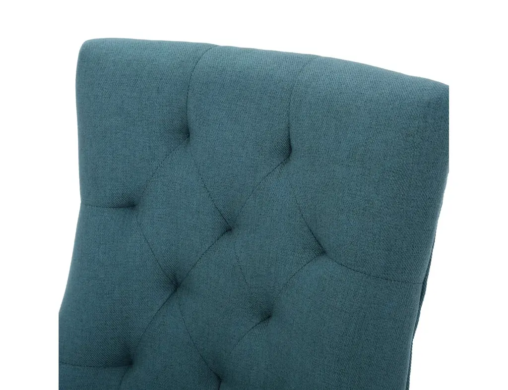 Set Of 2 Dining Chair, Cushioned Linen Seat & Buttonless Tufted Back, Dark Teal