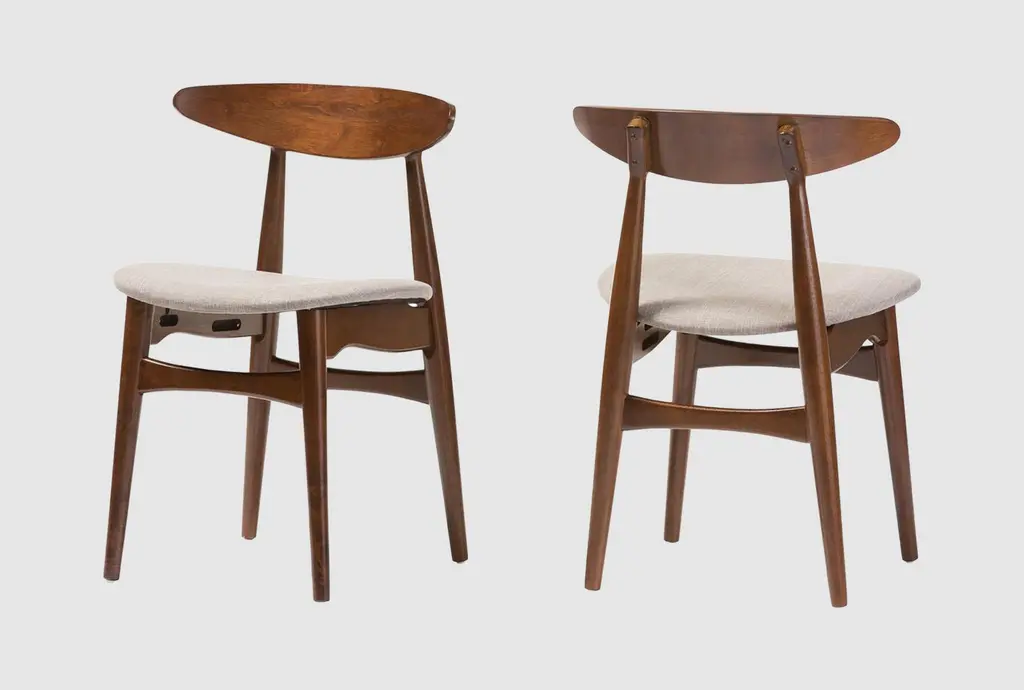 Set Of 2 Dining Chair Uçá - Solid Wood, Upholstered Seat.