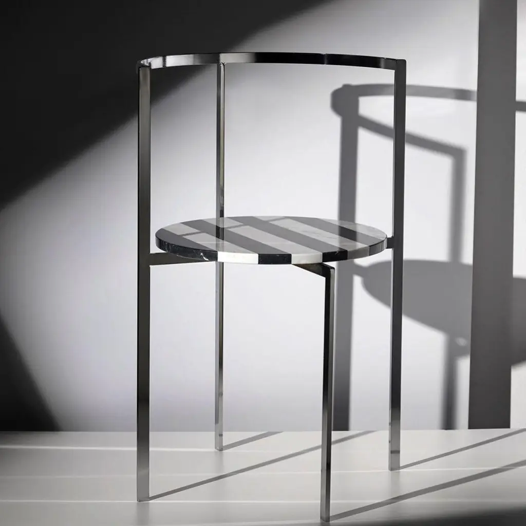 Set of 2 ego chair Lisette RützouPrice for a basic version for this product.Dimensions: W 60 x H 74.5 cmMaterials: Materials: Marble / steelColors: chrome & stripe marble black / White top Lisette Rützou’s design is motivated by an urge to articulate a story. Inspired by the beauty of materials, form and architecture, each design is an independent statement - contemporary functionalism with a feminine touch. Each piece tells an individual story – an embodiment of emotion ? “I hope with my design to create a reaction, a feeling beyond beauty and fine lines. To me - designing is personal – color, movement, sound and scale – a universal language essential to my approach".