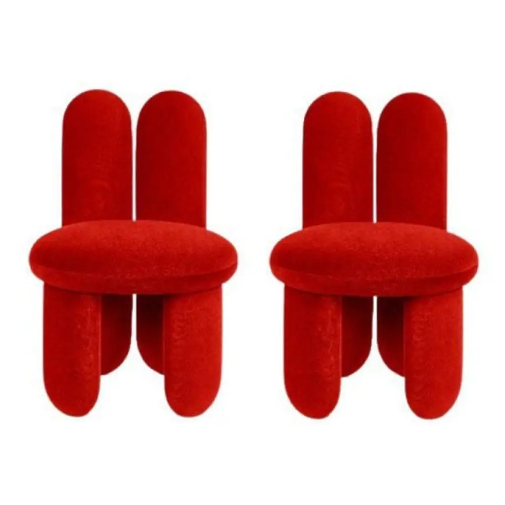 Set of 2 glazy chairs, gentle663 by Royal StrangerDimensions: W 58 D 58 H 85 cm SH 50 SD 46 cmMaterials: upholsteryAlso available: upholstery in all Royal Stranger’s fabric collection, & COM (Client’s Own Material). Base available lacquered in all NCS / RAL colors, or in gold, copper and silver leaf, with glossy or matte finishStep into a world of eye candy furniture with Glazy chair. There is a groovy feeling to the rounded lines defining its round seat, and biscuit-shaped backrest and legs. An irresistible furniture piece where velvety upholstery playfully meets a glazed back finishing. Glazy Chair is the icing on the cake of your interior designs.Royal Stranger is an exclusive furniture brand determined to bring you the best unique pieces of art and design.Fusing design, art, and the best craftsmanship, they strive to deliver the best state of handmade art furniture. The design team works every day to create meaningful products that represent values such as passion, function, aesthetics, and know-how. Values that are meant to represent Royal Stranger’s DNA. This dedication is present at all stages of production and the combination of craftsmanship and innovative design contributes toour final purpose: To produce certified high-quality products, made with passion and expertise and using royal materials such as gold leaves, rich woods, and high-quality lacquers.It was in 2013, as architects, that Sofia Santos & Rui Santos started to push the boundaries of innovation in several retail design concepts for some of the best stores in Portugal. This resolution has always been present in their work, and that’s how the brand was born.