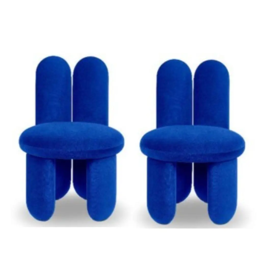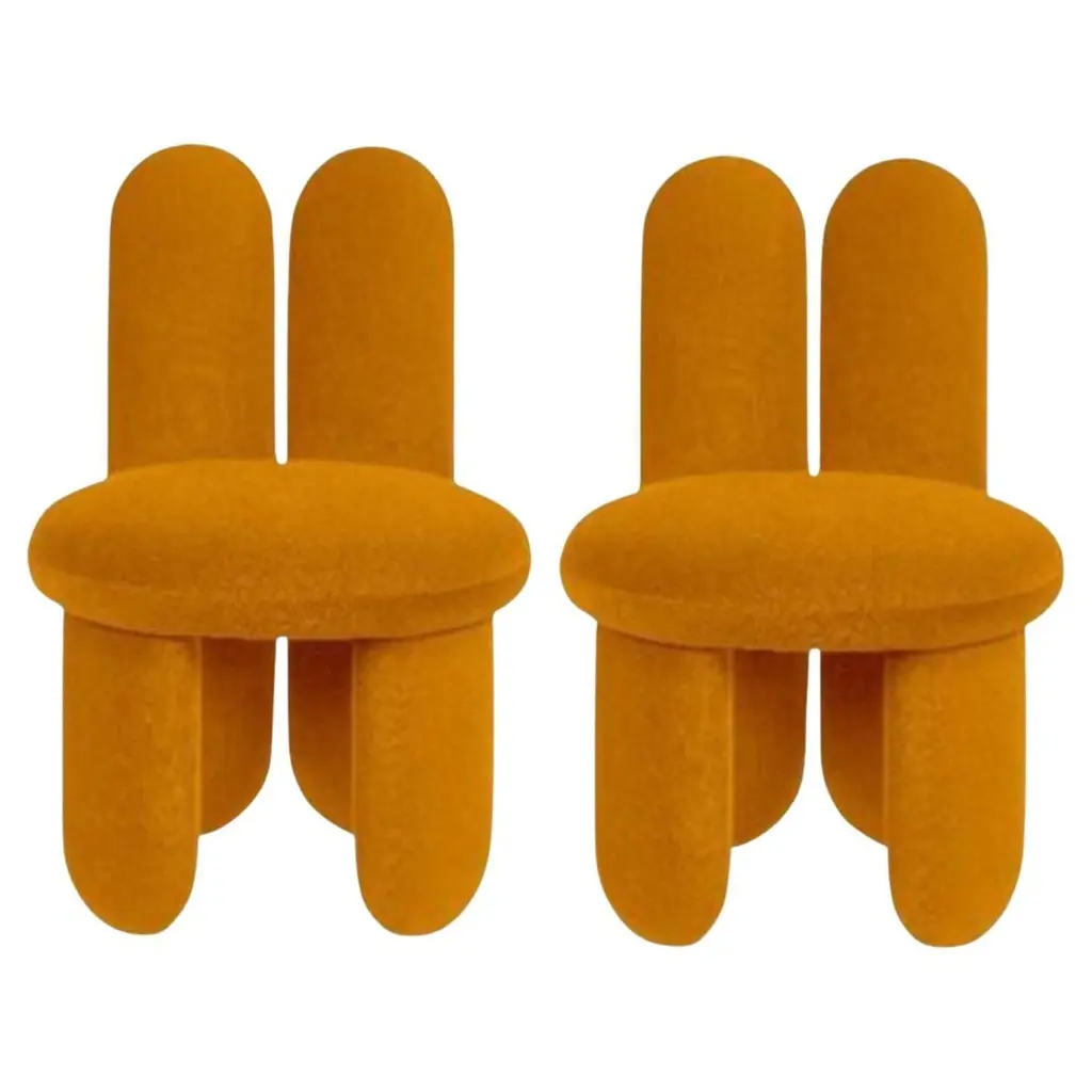 Set of 2 glazy chairs, Gentle by Royal StrangerDimensions: W 58 D 58 H 85 cm SH 50 SD 46 cmMaterials: UpholsteryAlso available: upholstery in all Royal Stranger’s fabric collection, & COM (Client’s Own Material). Base Available lacquered in all NCS/RAL colors, or in gold, copper and silver leaf, with glossy or matte finishStep into a world of eye candy furniture with glazy chair. There is a groovy feeling to the rounded lines defining its round seat, and biscuit-shaped backrest and legs. An irresistible furniture piece where velvety upholstery playfully meets a glazed back finishing. Glazy chair is the icing on the cake of your interior designs.Royal Stranger is an exclusive furniture brand determined to bring you the best unique pieces of art and design.Fusing design, art, and the best craftsmanship, they strive to deliver the best state of handmade art furniture. The design team works every day to create meaningful products that represent values such as passion, function, aesthetics, and know-how. Values that are meant to represent Royal Stranger’s DNA. This dedication is present at all stages of production and the combination of craftsmanship and innovative design contributes toour final purpose: To produce certified high-quality products, made with passion and expertise and using royal materials such as gold leaves, rich woods, and high-quality lacquers.It was in 2013, as architects, that Sofia Santos & Rui Santos started to push the boundaries of innovation in several retail design concepts for some of the best stores in Portugal. This resolution has always been present in their work, and that’s how the brand was born.