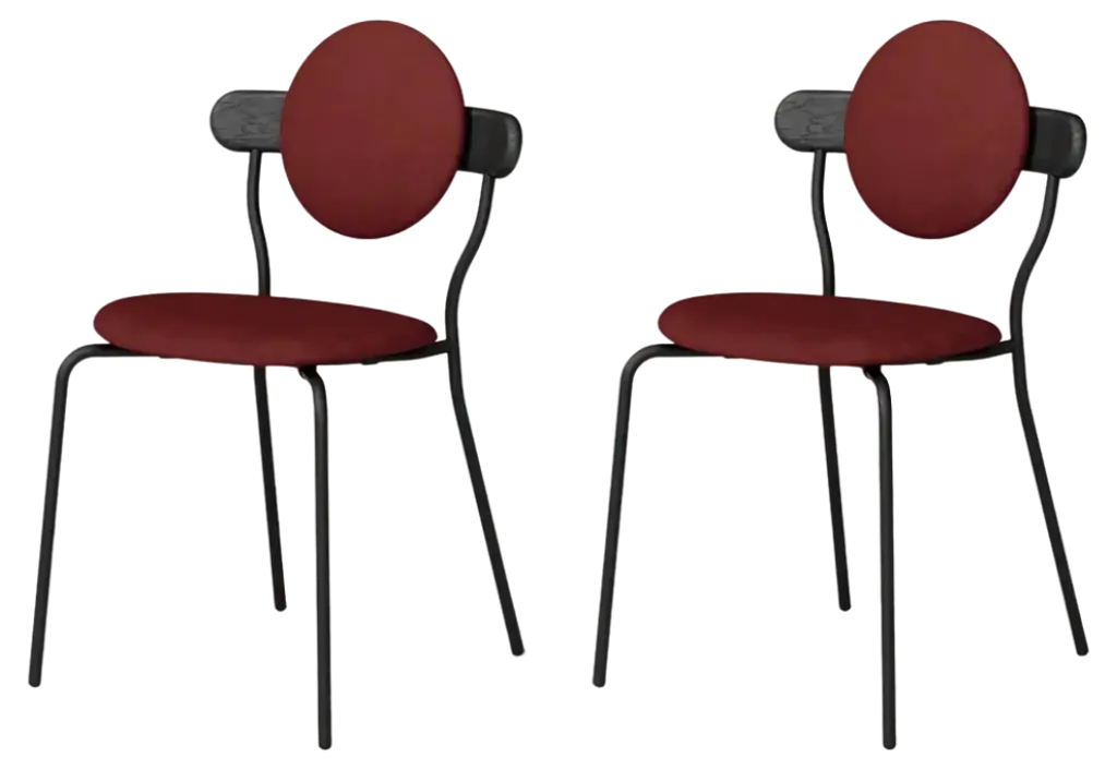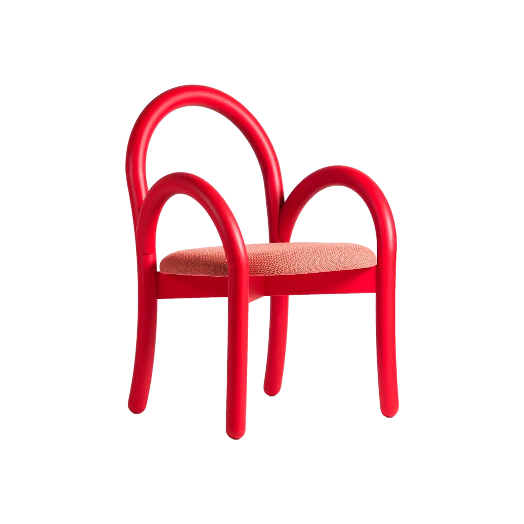 Set of 2, Goma armchairs, Red by Made By ChoiceDimensions: 55 x 55 x 85 cmMaterials: plywoodStandard finishes: Natural Wood / Painted BlackAlso Available: Upholstery in fabric or leather (Category 1 & 3), Goma dining chair, and Goma bar chair.The barstool GOMA was created for a restaurant project of the same name. Goma by Miss Voon is an Asian street food and cocktail bar in the heart of Stockholm where the bar stool is a solid piece with a clean and obvious design language. The barstool also has a sibling chair and armchair, all with a strong and distinct character.About Made by Choice: Nordic Happiness. Nordic Happiness is our grand theme and guiding star. Studies show that Nordic people are among the happiest on Earth. Nordic happiness is composed of authentic values and sustainable choices. The vision of Choice is based on the added value of collective creation while promoting sustainable Nordic values through authentic design. Rooted in the traditions of Finnish woodworks, Made by Choice is a creative powerhouse of collaborative thinkers, believers and makers, establishing a global brand for the 21st century. Committed to producing durable, bold and innovative designs, we combine contemporary woodworking methods and modern technology. Halikko is home to our 4000 square metre campus where we turn abstract concepts into tangible objects. Our team in our office in Helsinki coordinates all operations and installations. Made by Choice's agile, purpose driven approach means all new products are developed on demand, for a specific project and need, and carries the authentic story of it's reason of existence. Our products are developed and manufactured at our own factory in south-western Finland by some of the best craftsmen in the world. Choice is inspired by heritage and Nordic urban lifestyle. We are driven to explore the boundaries of our discipline to create new narratives. Choice collaborates with leading designers and ambitious interior architects on site-specific projects to create new urban spaces.Choice was founded by Lasse Laine, Sebastian Jansson and Niclas Ahlström – based on the common vision and mutual values to create a distinctive, value-driven brand and a new design heritage.