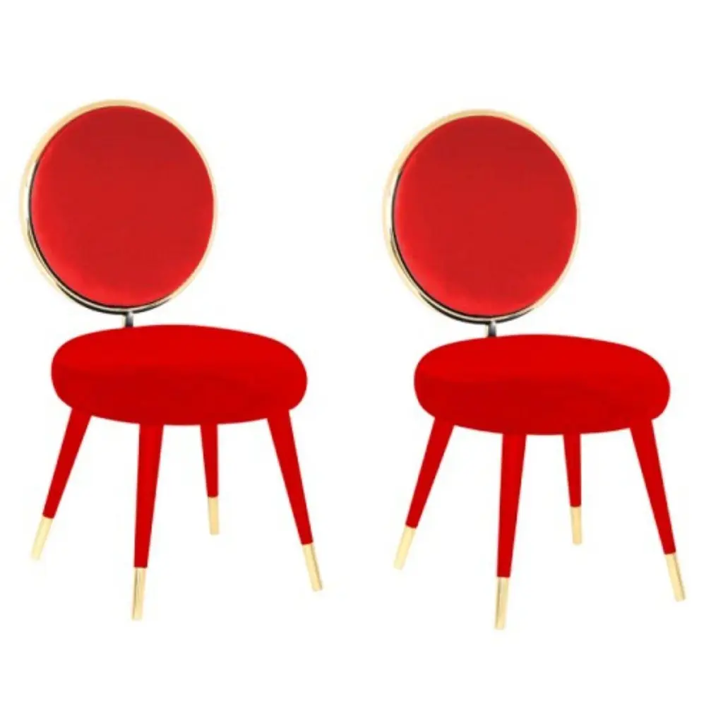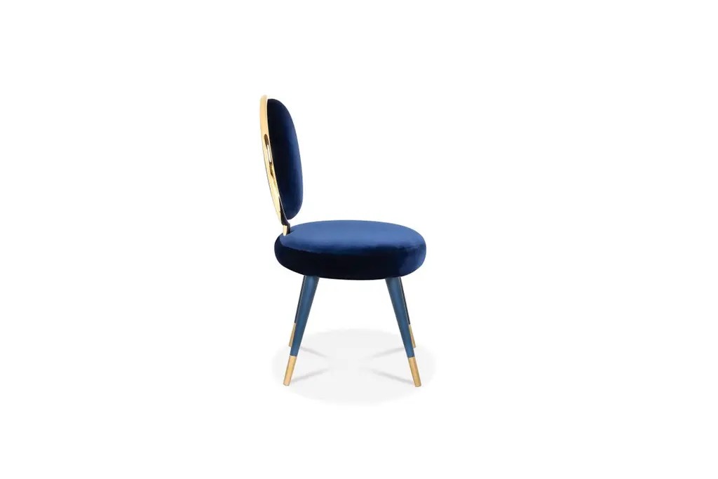 Set of 2 graceful dining chairs, Royal StrangerDimensions: 95 x 54 x 54 cmMaterials: Blossom pink velvet upholstery with stainless steel coated in brass frame elevated by lacquered wood legs and brass feet covers.Available in: Mint green, light pink, royal green, royal red, Navy Blue.A round and sweet shaped chair involved in a graceful glamour of gold contour. The perfect addiction for an elegant and sweet Ambience.Royal Stranger is an exclusive furniture brand determined to bring you the best unique pieces of art and design.Fusing design, art and the best craftsmanship, they strive to deliver the best state of the handmade art furniture. The design team works every day to create meaningful products that represent values such as passion, function, aesthetics and know-how. Values that are meant to represent Royal Stranger’s DNA. This dedication is present at all stages of production and the combination of craftsmanship and innovative design contributes toour final purpose: to produce certified high-quality products, made with passion and expertise and using royal materials such as gold leaf, rich woods and high quality lacquers.It was in 2013, as an architects, that Sofia Santos & Rui Santos started to push the boundaries of innovation in several retail design concepts for some of the best stores in Portugal. This will has always been present in their work, and that’s how the brand was born.
