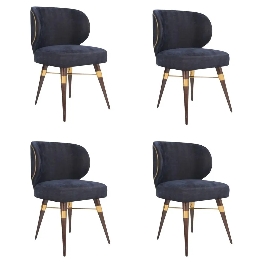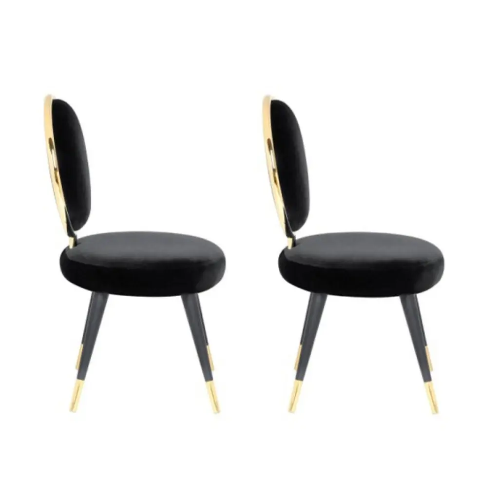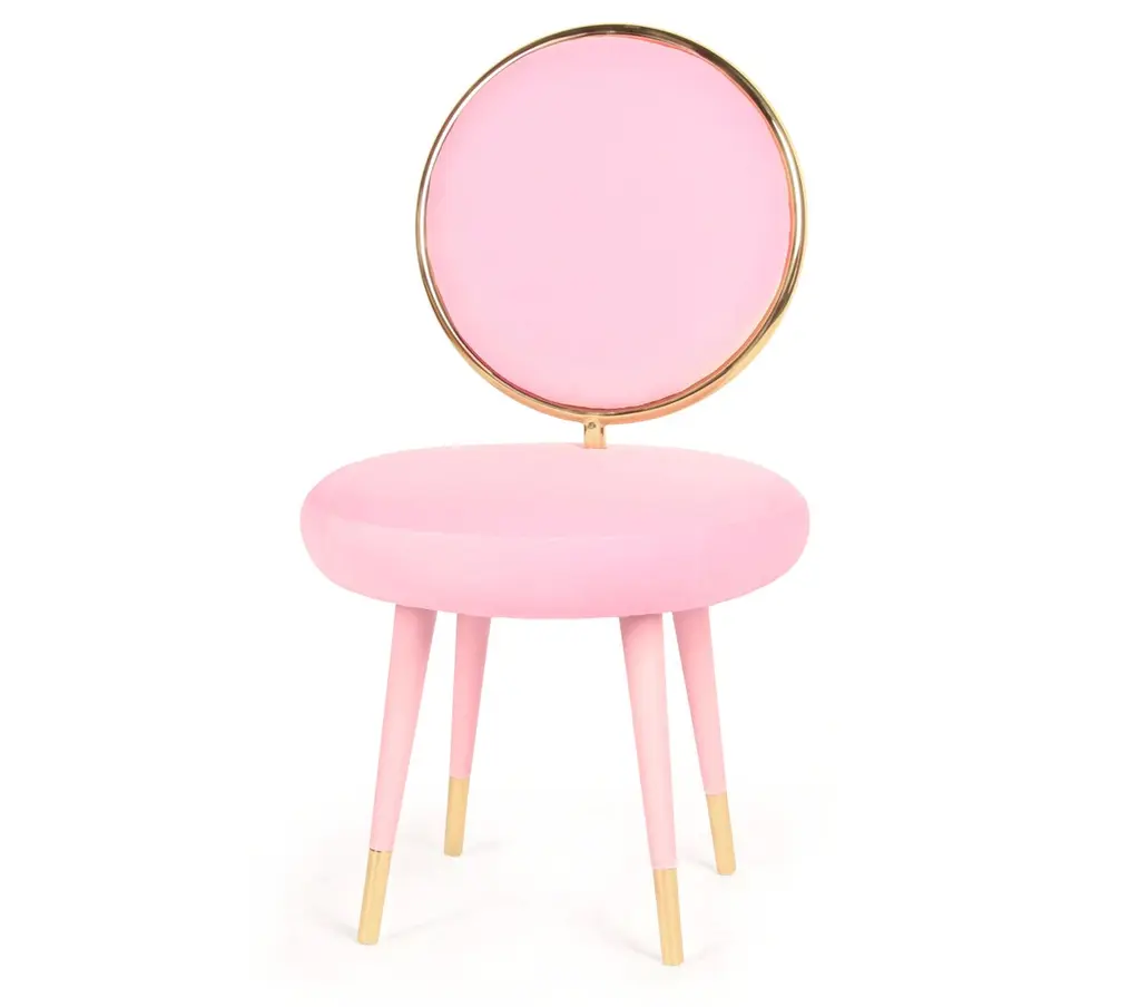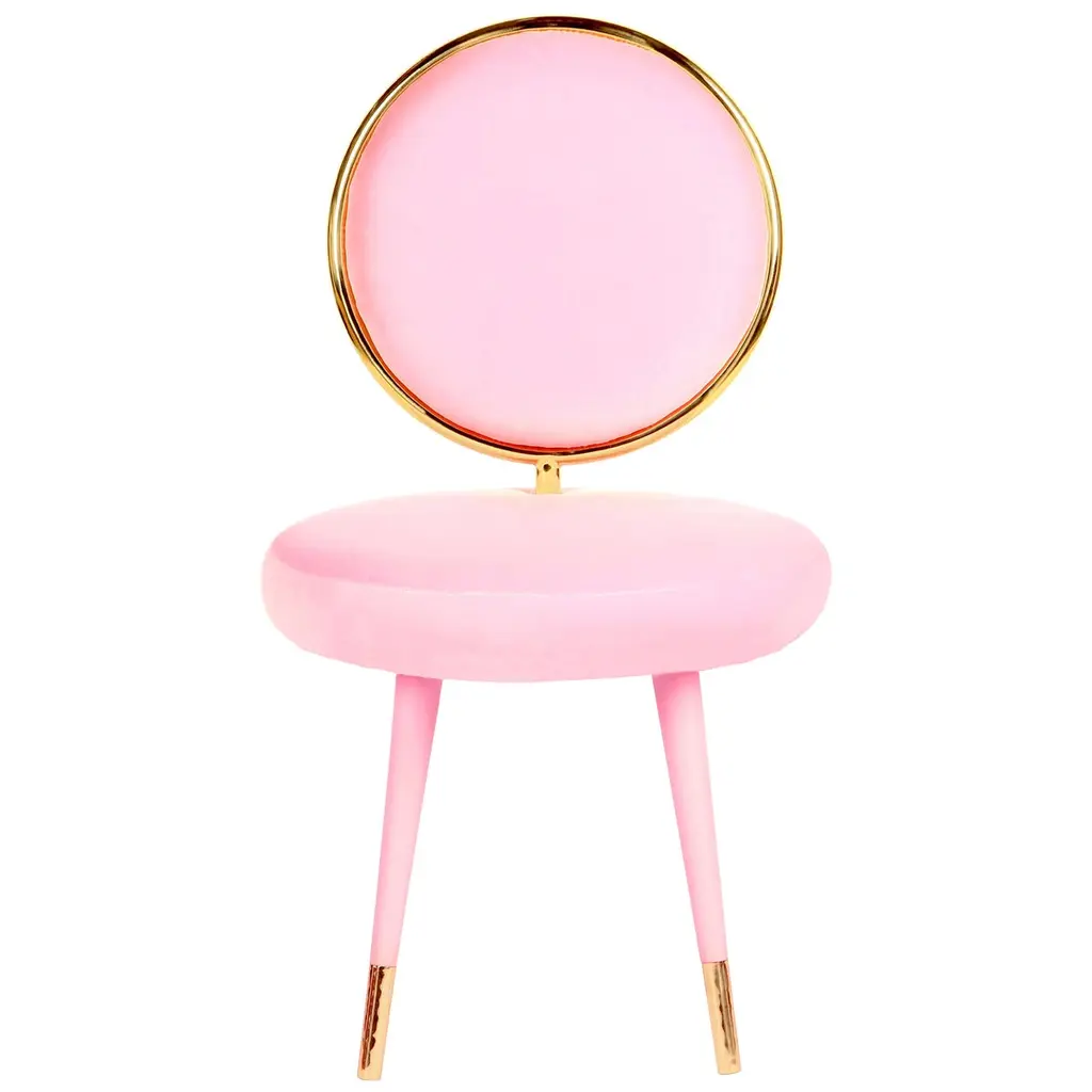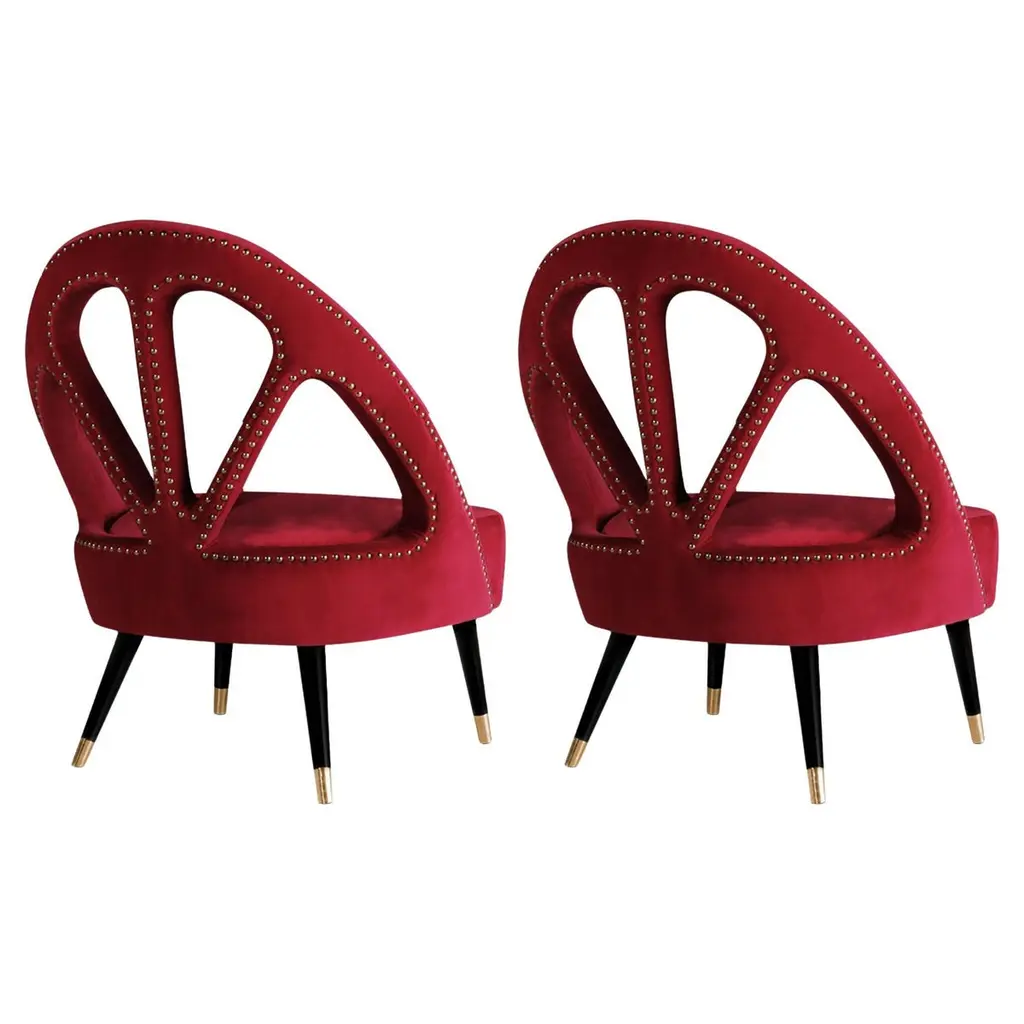 Set of 2 graceful dining chairs, Royal StrangerDimensions: 95 x 54 x 54 cmMaterials: Blossom pink velvet upholstery with stainless steel coated in brass frame elevated by lacquered wood legs and brass feet covers.Available in: Mint green, light pink, royal green, royal red.A round and sweet shaped chair involved in a graceful glamour of gold contour. The perfect addiction for an elegant and sweet Ambience.Royal Stranger is an exclusive furniture brand determined to bring you the best unique pieces of art and design.Fusing design, art and the best craftsmanship, they strive to deliver the best state of the handmade art furniture. The design team works every day to create meaningful products that represent values such as passion, function, aesthetics and know-how. Values that are meant to represent Royal Stranger’s DNA. This dedication is present at all stages of production and the combination of craftsmanship and innovative design contributes toour final purpose: to produce certified high-quality products, made with passion and expertise and using royal materials such as gold leaf, rich woods and high quality lacquers.It was in 2013, as an architects, that Sofia Santos & Rui Santos started to push the boundaries of innovation in several retail design concepts for some of the best stores in Portugal. This will has always been present in their work, and that’s how the brand was born.