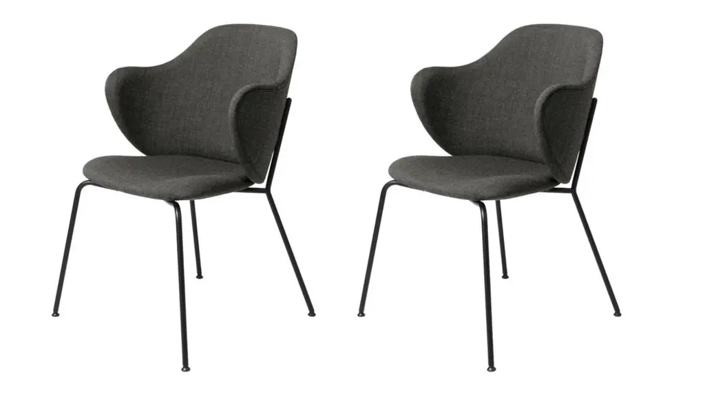 Set of 2 grey remix lassen chairs by LassenDimensions: W 58 x D 60 x H 88 cm Materials: textileThe Lassen chair by Flemming Lassen, Magnus Sangild and Marianne Viktor was launched in 2018 as an ode to Flemming Lassen’s uncompromising approach and special feel for detail, aesthetics, quality and form. The upholstered seat and back is placed on a geometric frame in powder-coated black metal and the dining chair embraces one’s body, letting you sit comfortably for hours on end.By Lassen is a Danish design brand focused on iconic designs created by Mogens and Flemming Lassen, founded by Lassens’ relatives in 2008. Brothers Mogens (1901-1987) and Flemming (1902-1984) Lassen are known as two of Denmark’s greatest architects and designers. Both were renowned pioneers of Danish functionalism and modernist architecture, honoured with numerous prestigious medals and awards. Headed by Mogens Lassen’s grandson Søren Lassen, By Lassen carries on the brothers’ design philosophy by manufacturing their iconic designs as well as products by other designers that complement the Lassen’s functionalist style. The company’s mission is to continue the tradition of timelessness, functionality and quality, and to introduce the Lassen’s design heritage to new generations.