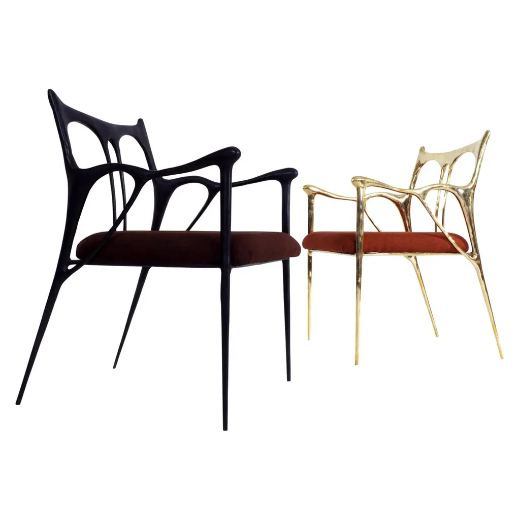 Set of Hedonê chairs by MamelucaMaterial: corian, stainless steelDimensions: D 65 x W 85 x H 95 cmThe anatomical and physiological studies allowed the discovery that the clitoris was not only richer in nerve endings but also more vascularised, making it the most sensitive part of the genitalia. With the external stimuli made from the muscular movements, the nervous Apparatus creates these stimuli, giving the sensation of pleasure. Because of historical female sexual oppression, which was widely historically documented in the Nineteenth Century, with the intention of curbing the feminist movement, we wanted to honour women with the creation of Hedonê, an armchair that celebrate the satisfaction of female pleasure from its two main libidinal points: the clitoris and the Gräfenberg spot through external stimulation, whilst creating connotations of a blossoming flower, celebrating how natural the sex drive is."Our goal with Design is to tell stories, generating questions, emotions and discoveries through human senses. Contemporary design transcends basic survival needs and leads us to a poetic design of new information and experiences."The studio was launched in 2010 in Rio de Janeiro, Brazil. After 10 years, it’s time to cross the Atlantic and explore the old world not only historically but the way the old has being reinvented everyday based on the needs of the new. We are still in a transitional atmosphere without a physical space, but full of expectations with the new horizon.