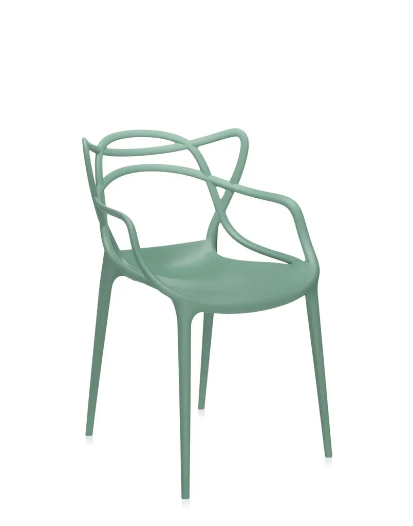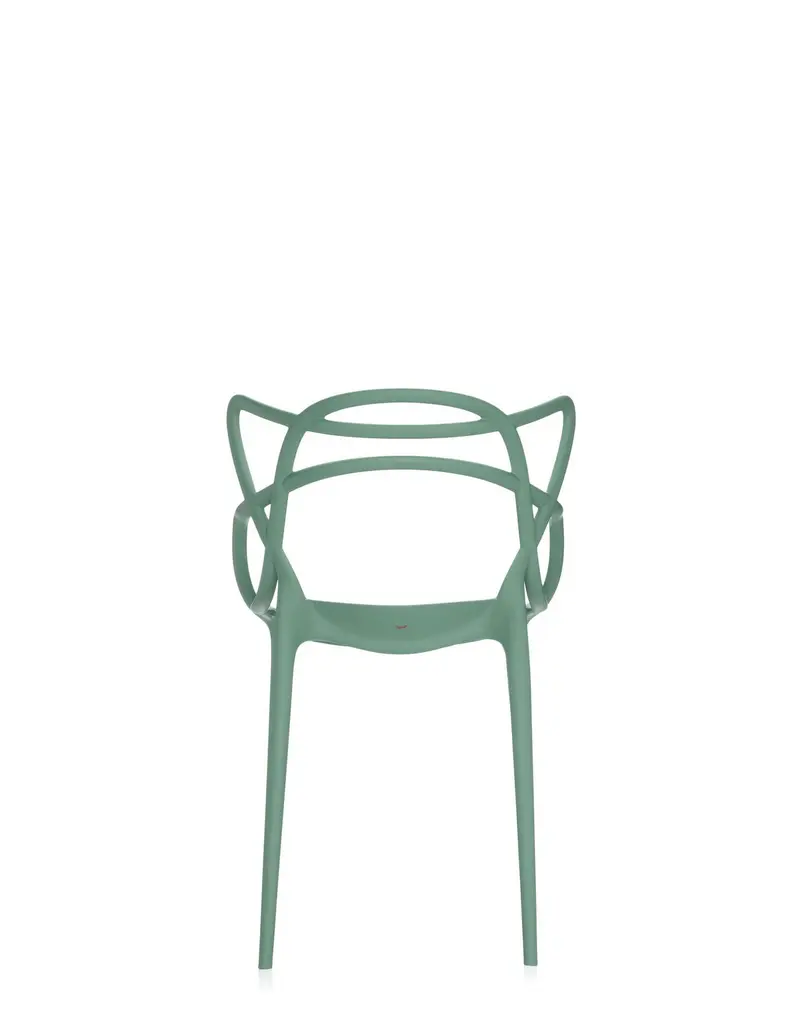 The Masters chair is a powerful tribute to three symbolic chairs, re-read and re-interpreted by the creative genius of Starck. The unmistakable silhouettes of the Series 7 by Arne Jacobsen, the Tulip Armchair by Eero Saarinen and the Eiffel chair by Charles Eames are interwoven into a sinuous hybrid giving life to a fusion of original and engaging styles. The Masters is light, practical and stackable and can be used outdoors as well. To give the Masters an even more precious, exclusive and sophisticated look it is given new and surprising metallic finishes. The Masters chair was honoured with the prestigious 2010 Good Design Award presented by the Chicago Athenaeum - Museum of Architecture and Design and the 2013 Red Dot Design Award.