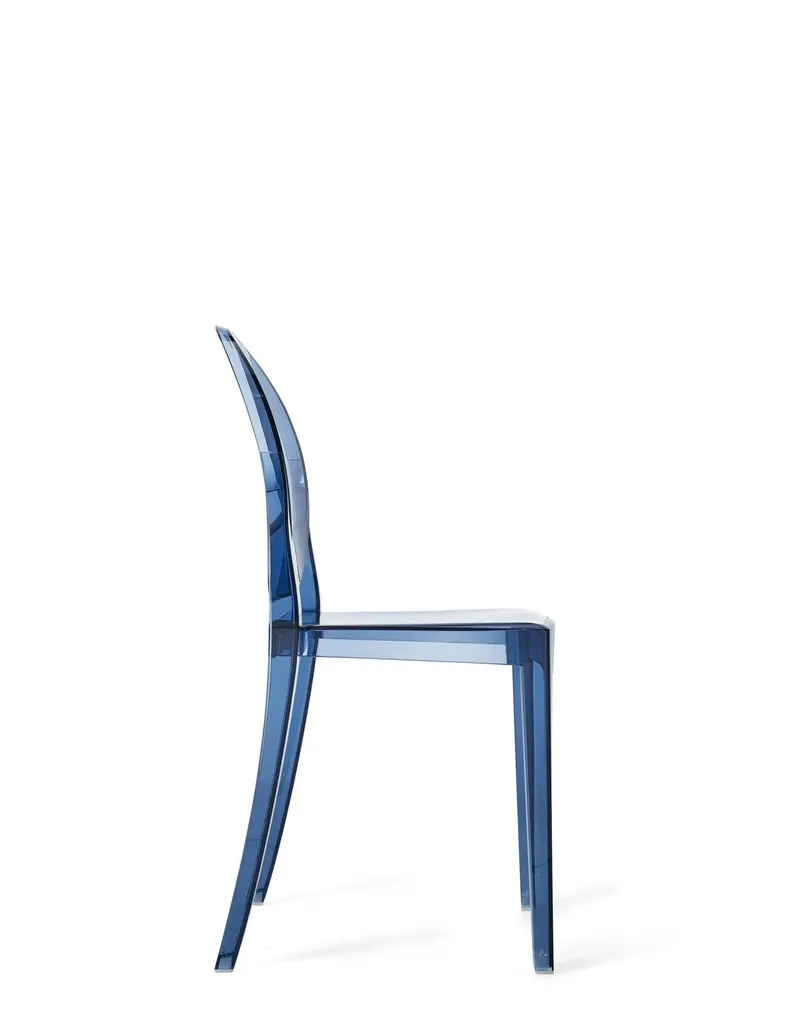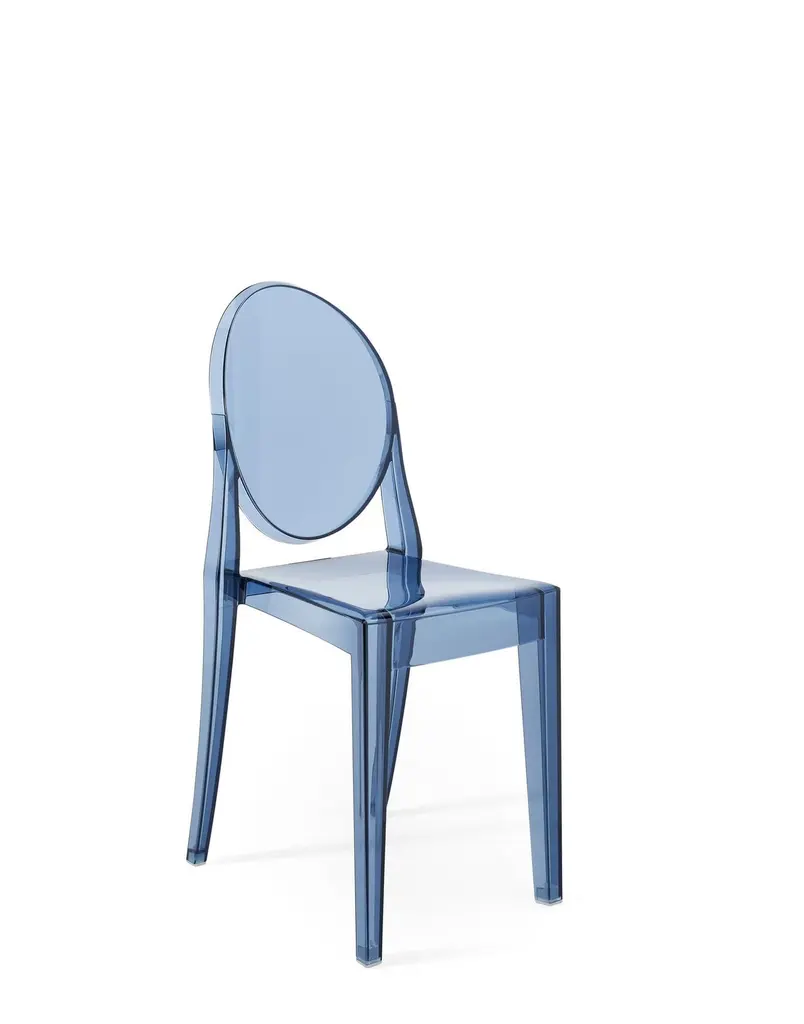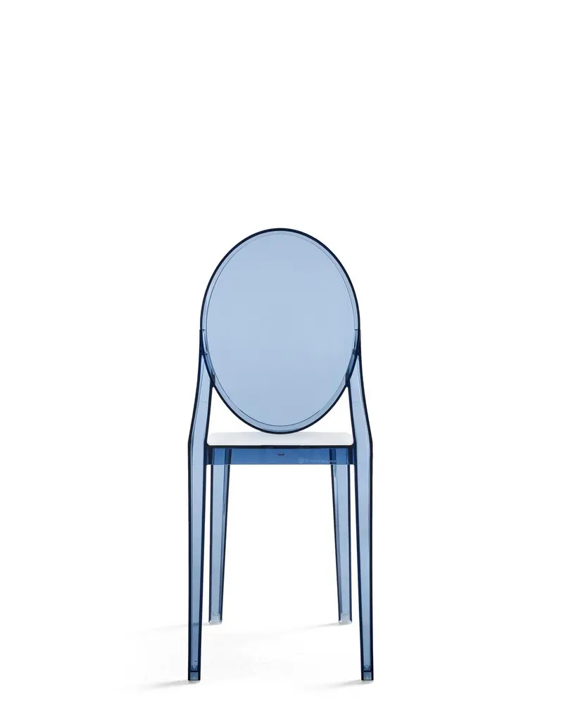This is a chair born of Classic lines with a rounded backrest that recalls the shape of antique medallions, whilst the seat is linear and geometric. Victoria ghost is made of transparent, colored polycarbonate and formed in a single injection mould. It is stable, comfortable, robust and weather resistant. Once more we find a chair created thanks to the technological know-how amassed over the years by Kartell to create articles which have made the company world renowned. It is an article with great charm and personality which fits elegantly into any style of surrounding.