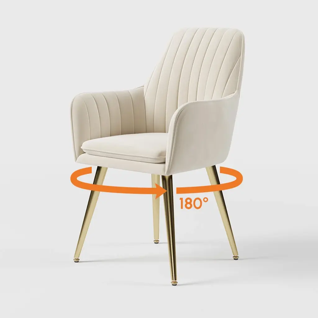 Set Of 2 Luxury Rotating Dining Chairs With Velvet Upholstery Beige