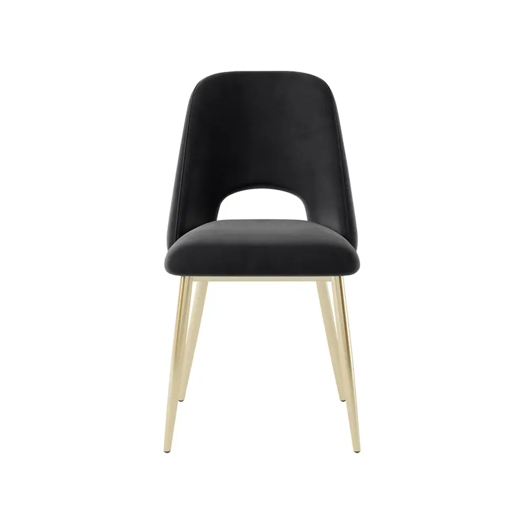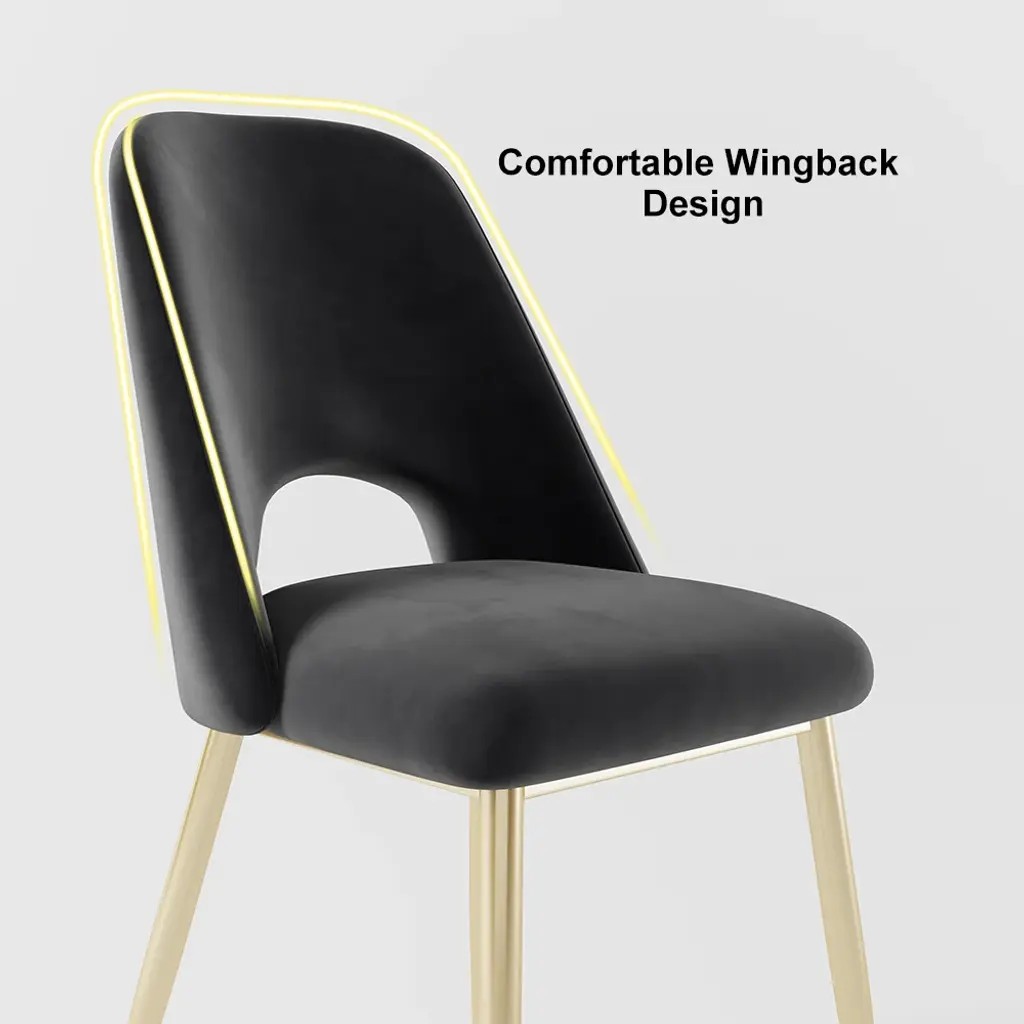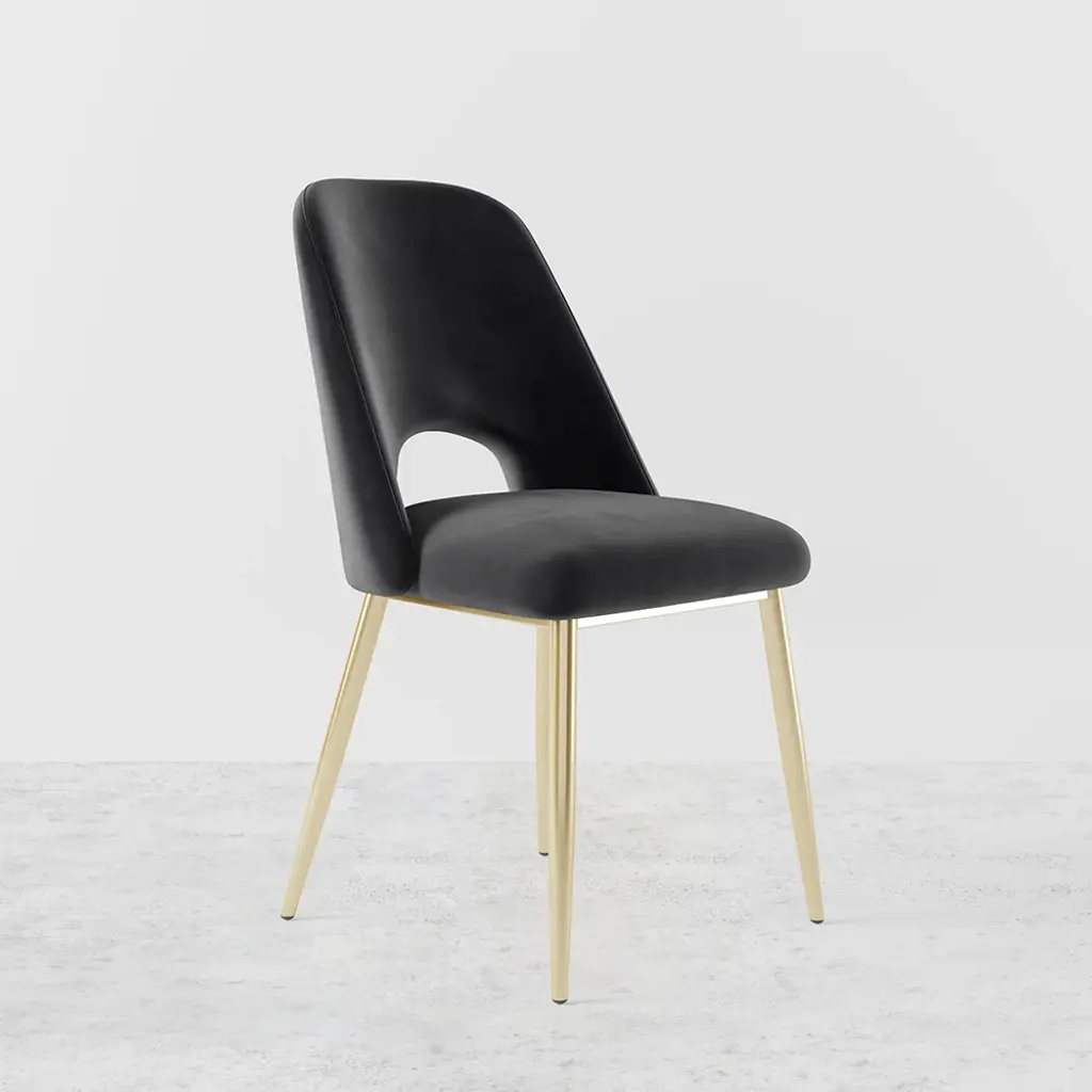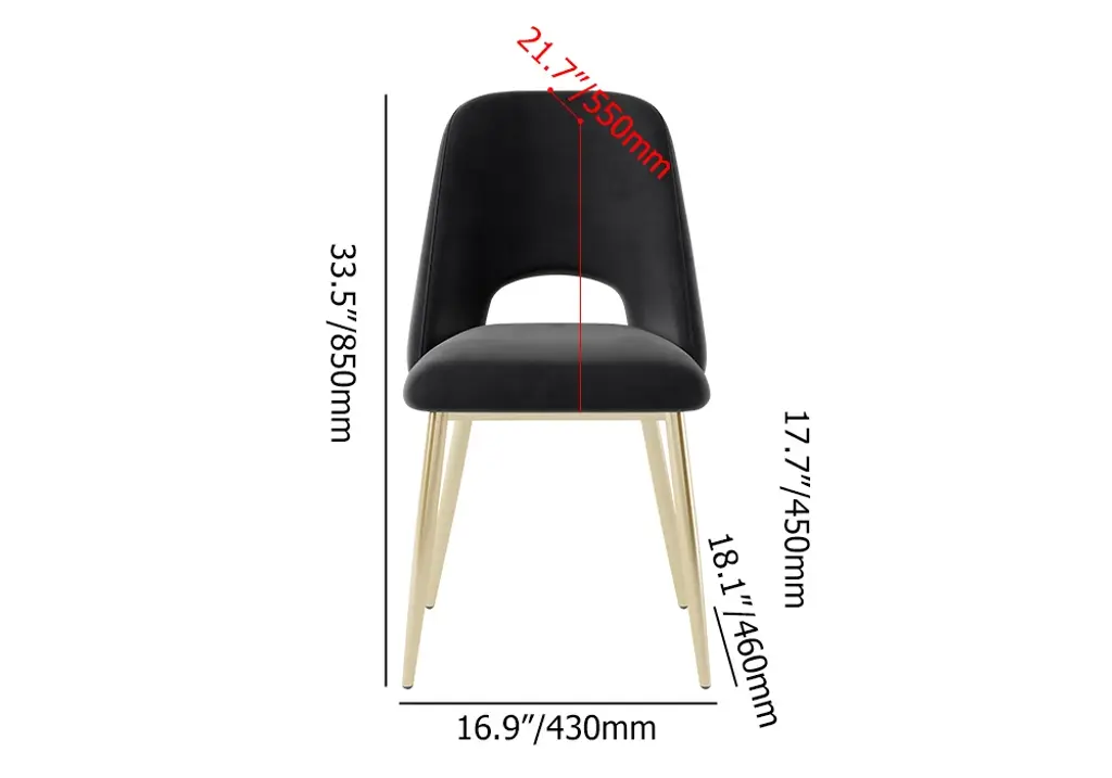 This design offers a shapely seatback designed with a cutout for added flair. The look is completed with flannel material and an antique gold steel frame. Adopt a metal iron frame, the base is thick and stable, durable, and strong bearing capacity. This dining chair can improve the quality of the room no matter where it is placed at home. Flannel material to make the home more elegant. The comfortable sitting feeling can let you go home and forget the tiredness of the day.