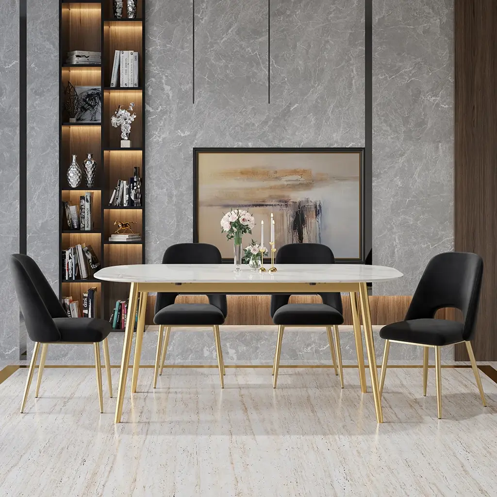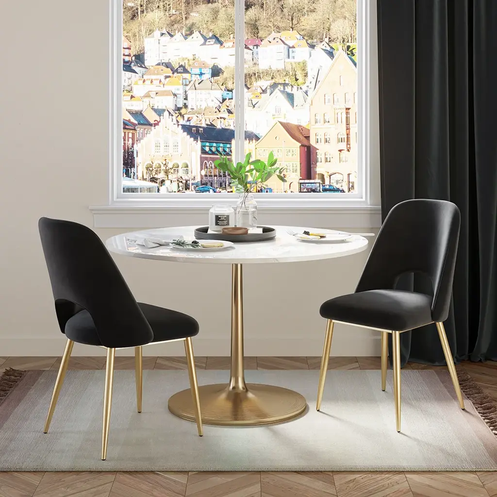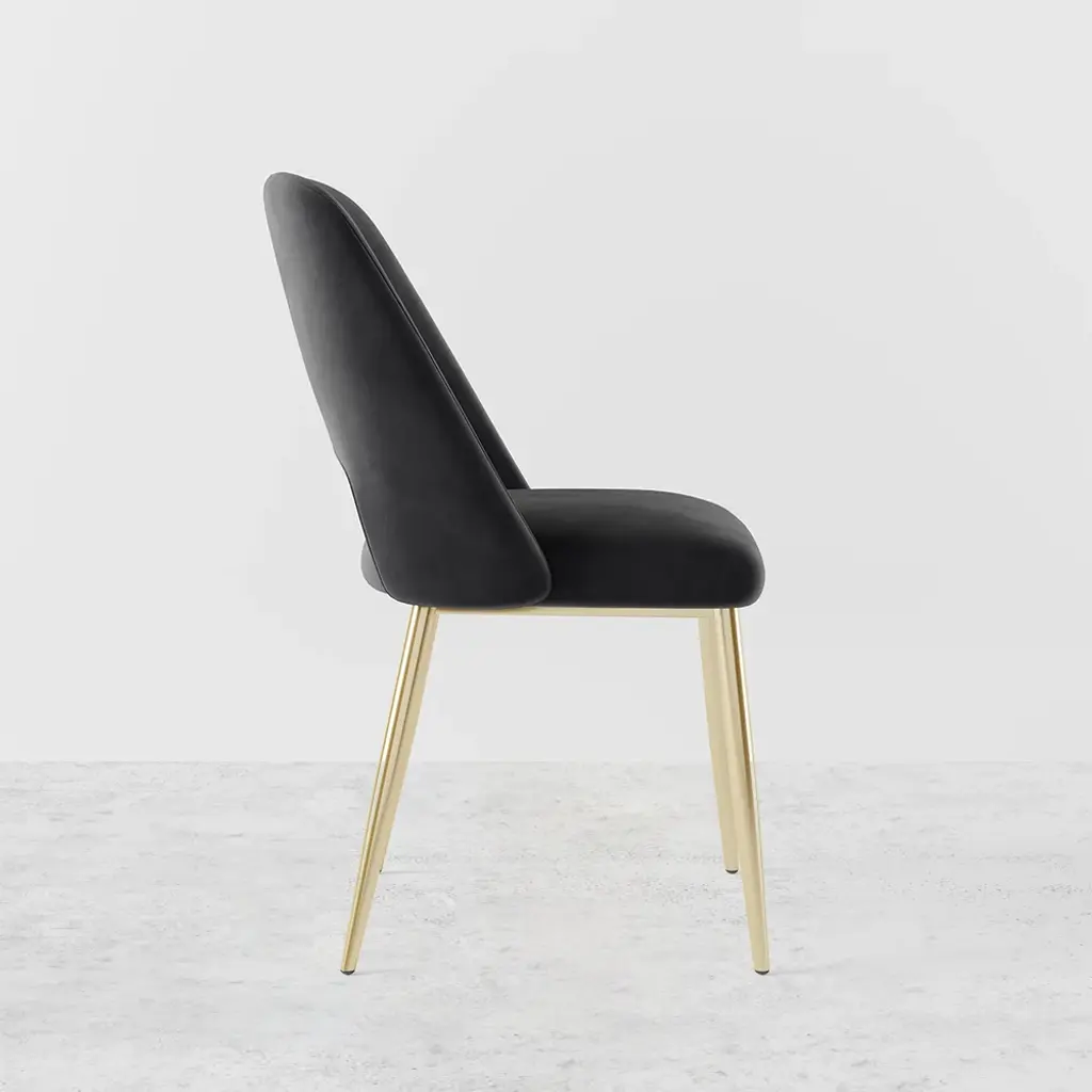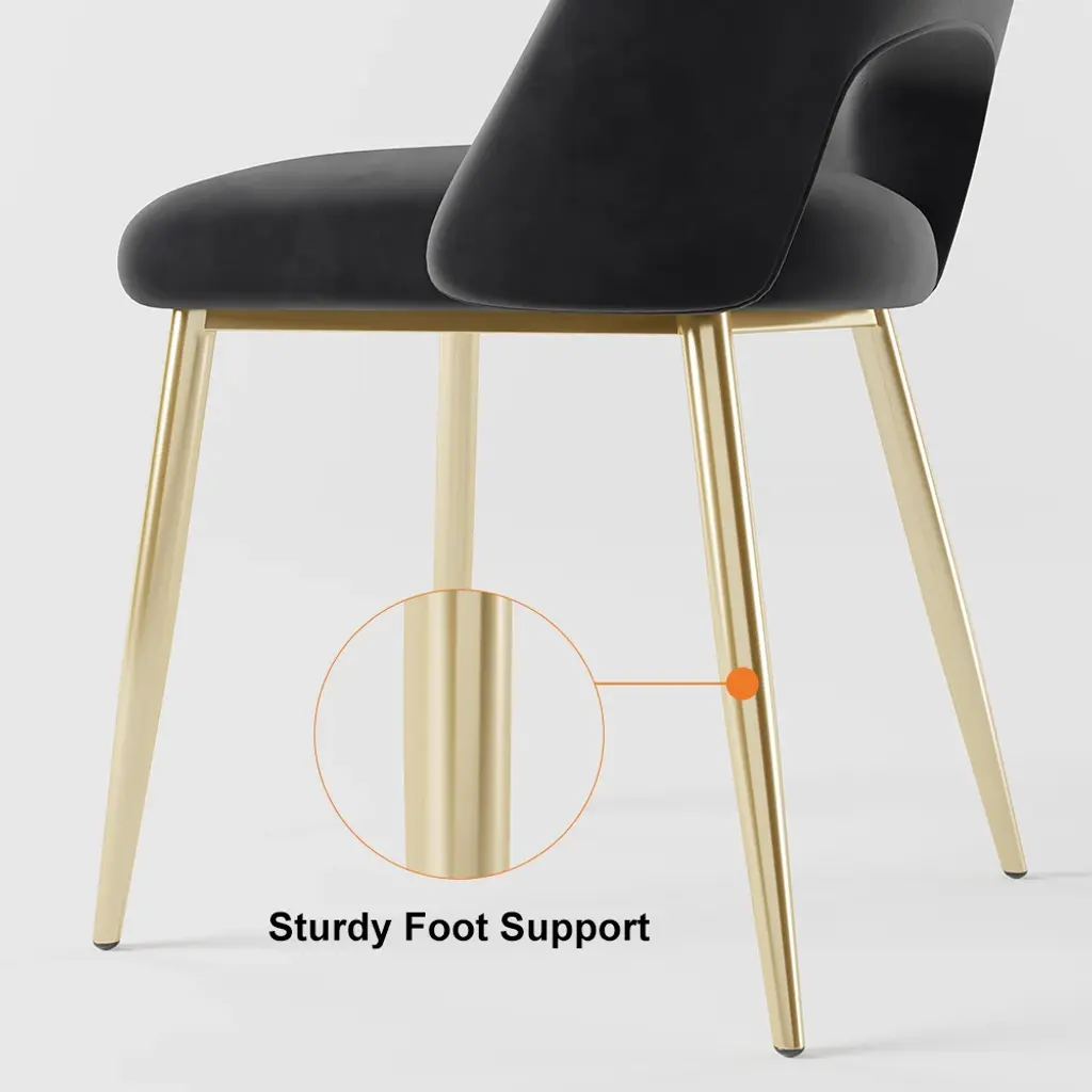 This design offers a shapely seatback designed with a cutout for added flair. The look is completed with flannel material and an antique gold steel frame. Adopt a metal iron frame, the base is thick and stable, durable, and strong bearing capacity. This dining chair can improve the quality of the room no matter where it is placed at home. Flannel material to make the home more elegant. The comfortable sitting feeling can let you go home and forget the tiredness of the day.