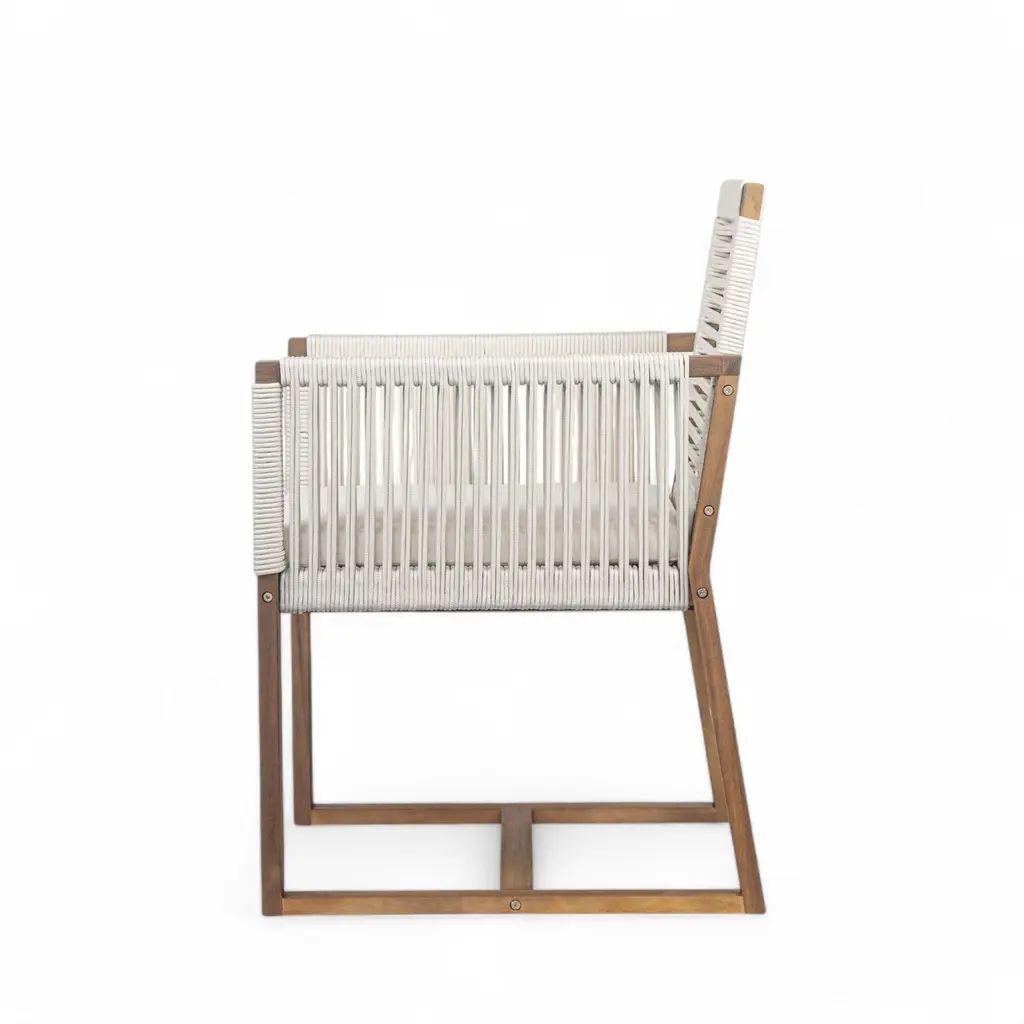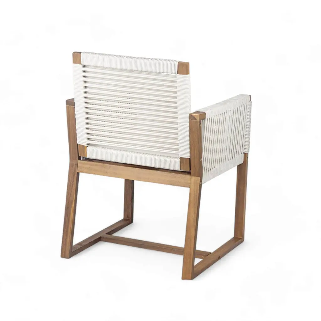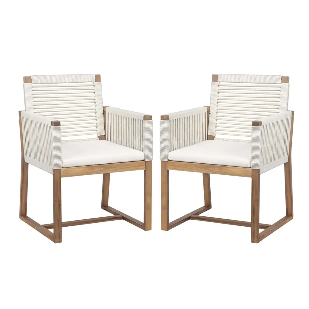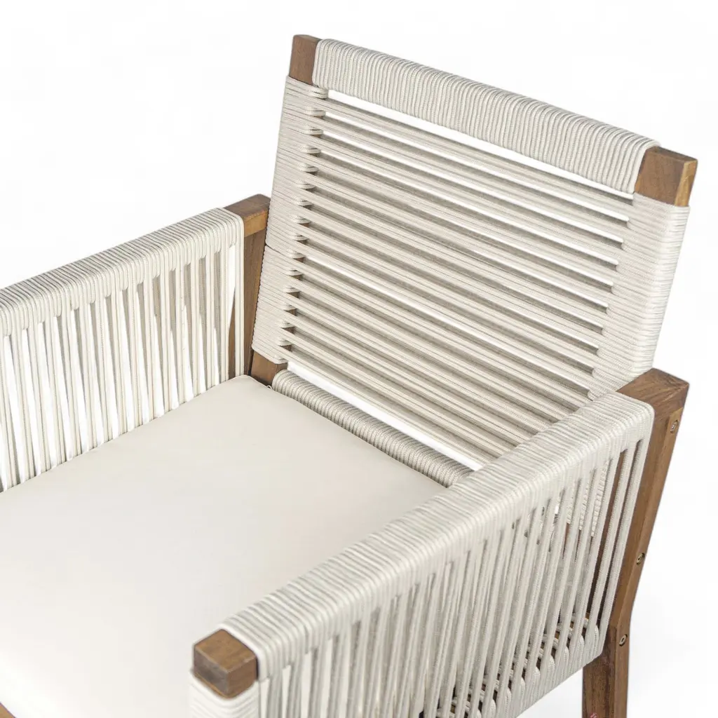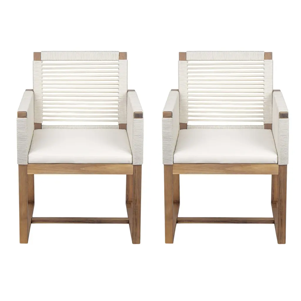 Set Of 2 Outdoor Acacia Wood Dining Armchair With Rope Design, Cushion - White