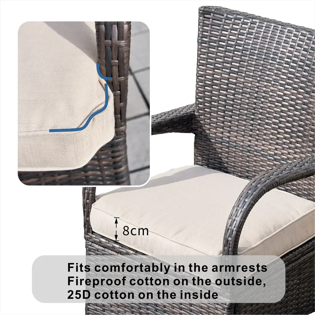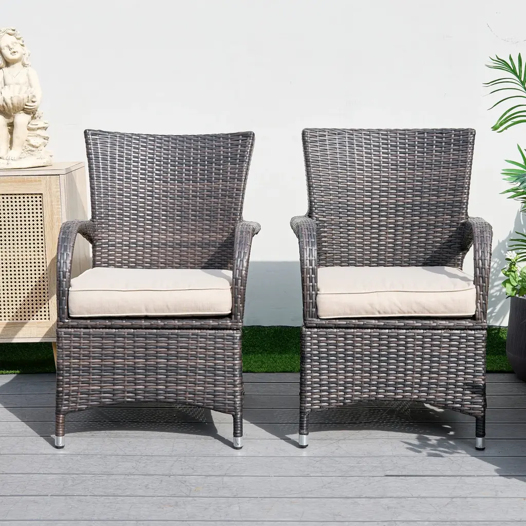 Set Of 2 Outdoor Aluminum Wicker Dining Chair With Cushions And Armrest - Brown