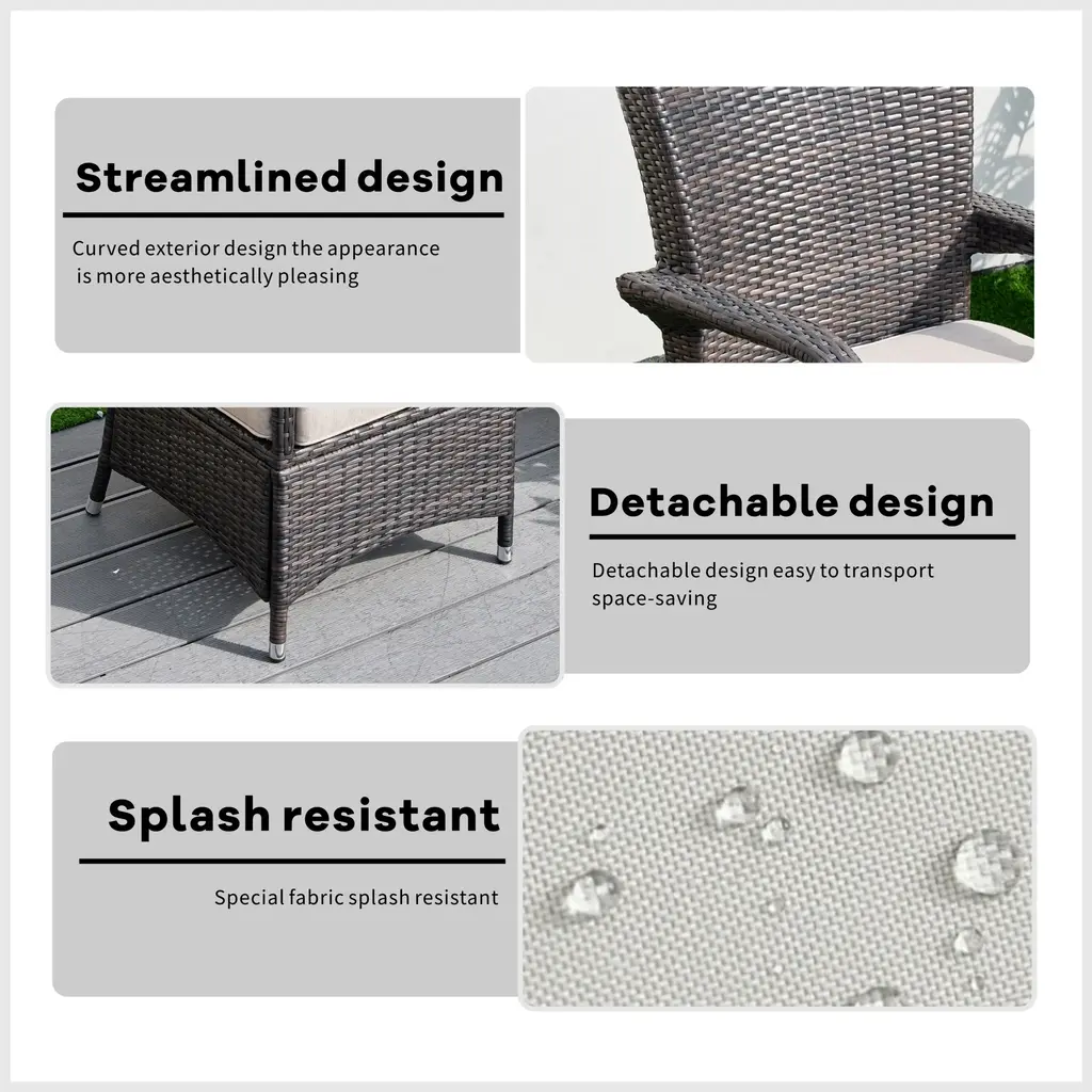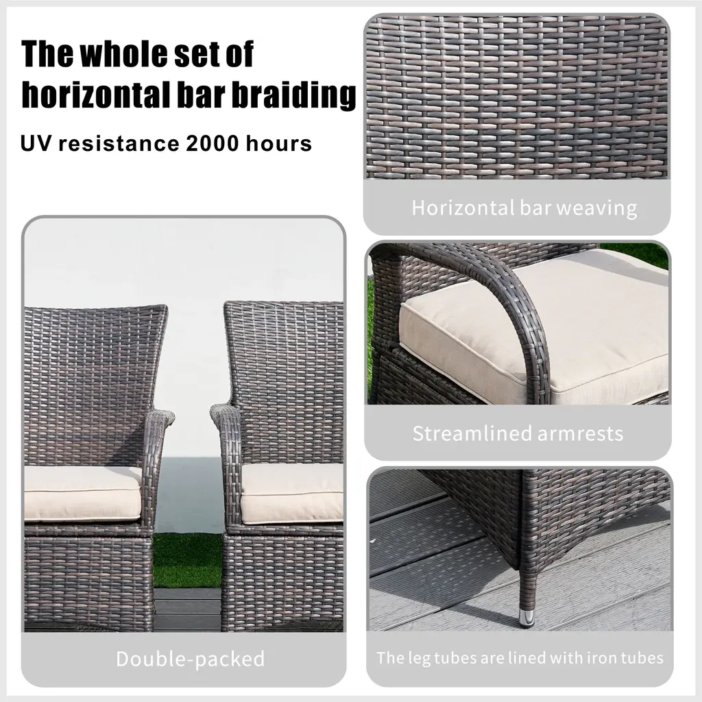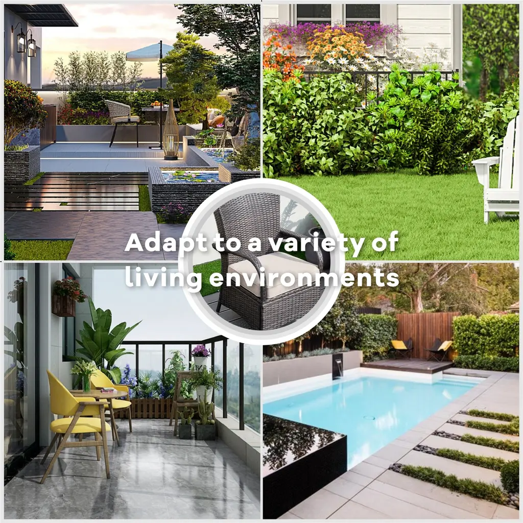 The chairs are upholstered with water-repellent fabric, making them suitable for both indoor and outdoor use. Whether it's a light drizzle on the patio or an accidental spill indoors, the fabric can easily handle it. Sink into comfort with our ergonomically designed seats. Plus, you have the choice of two attractive colors to match your decor, allowing you to customize your space according to your taste. Made with advanced materials, these chairs are resistant to corrosion, insects, and mold. You don't have to worry about them deteriorating over time, providing long-term use without any hassles. Constructed with lightweight aluminum, these chairs are easy to move around and clean. The aluminum material is rust-free, ensuring that your chairs will always look as good as new, even after years of use. Features:Specifications: