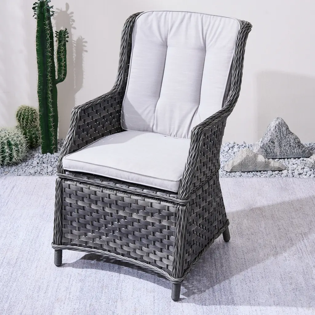 Set Of 2 Outdoor Aluminum Wicker Dining Chair With Cushions - Grey