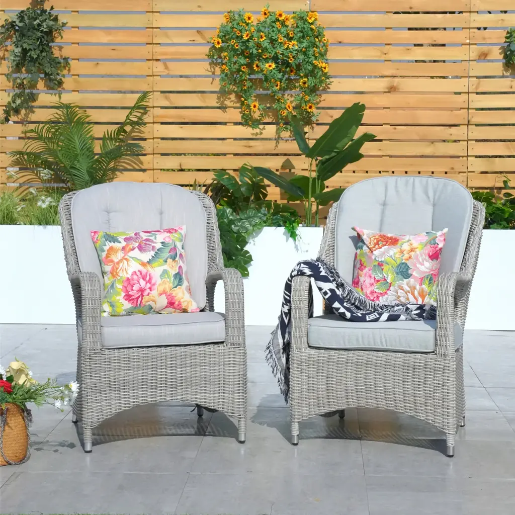 Set Of 2 Outdoor Gray Aluminum Semi - Circular Rattan Pe Wicker Dining Chairs - Grey
