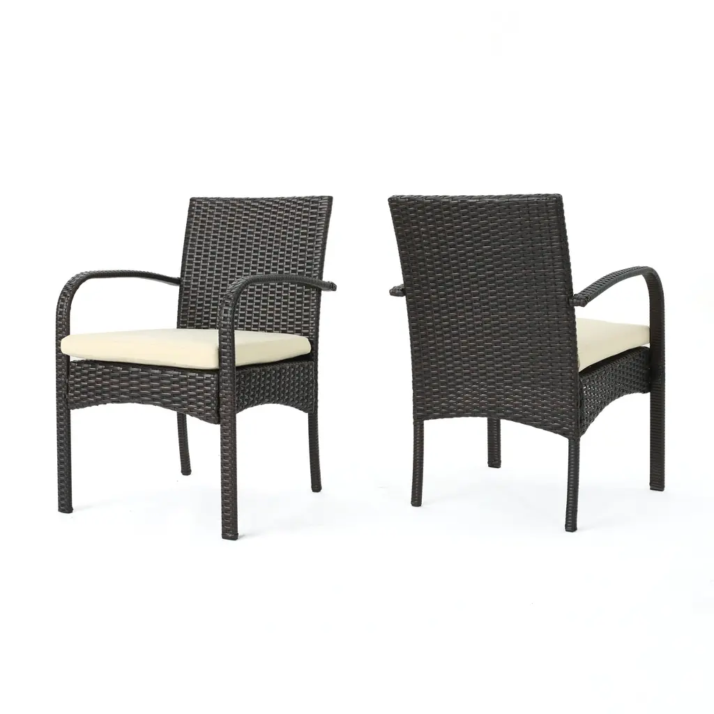 [Set Of 2] Outdoor Pe Wicker Dining Chair - Brown