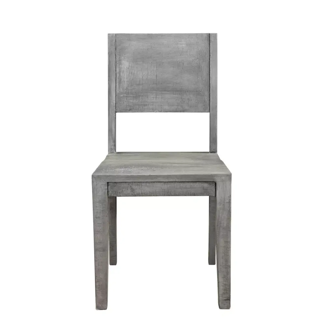 Raven Mango Wood Dining Chair Every dining table requires some chairs or benches. Most homeowners love distinctive and unique chair designs because they add to the beauty of the dining area. Our Raven mango wood dining chair is a great fit for all kinds of tables. It is made from sturdy mango wood and handcrafted using proven techniques. These products are durable, reliable, and have a contemporary design. Our Raven mango wood chair has Lagos gray color finish, which makes it an ideal match for our Raven mango wood dining table. We made these products from handpicked rough sawn wood that retains a lot of its natural characteristics. These chairs will have a rustic appeal to your home. Size • 18" x 18" x 35" • AAC185LG Our chair's rustic appeal comes from its wood. We use proven cutting and polishing techniques to help retain minor imperfections like knots, disrupted grain patterns, dents, or even small cracks. These don't compromise a chair's physical integrity so you don't need to worry about it falling apart.