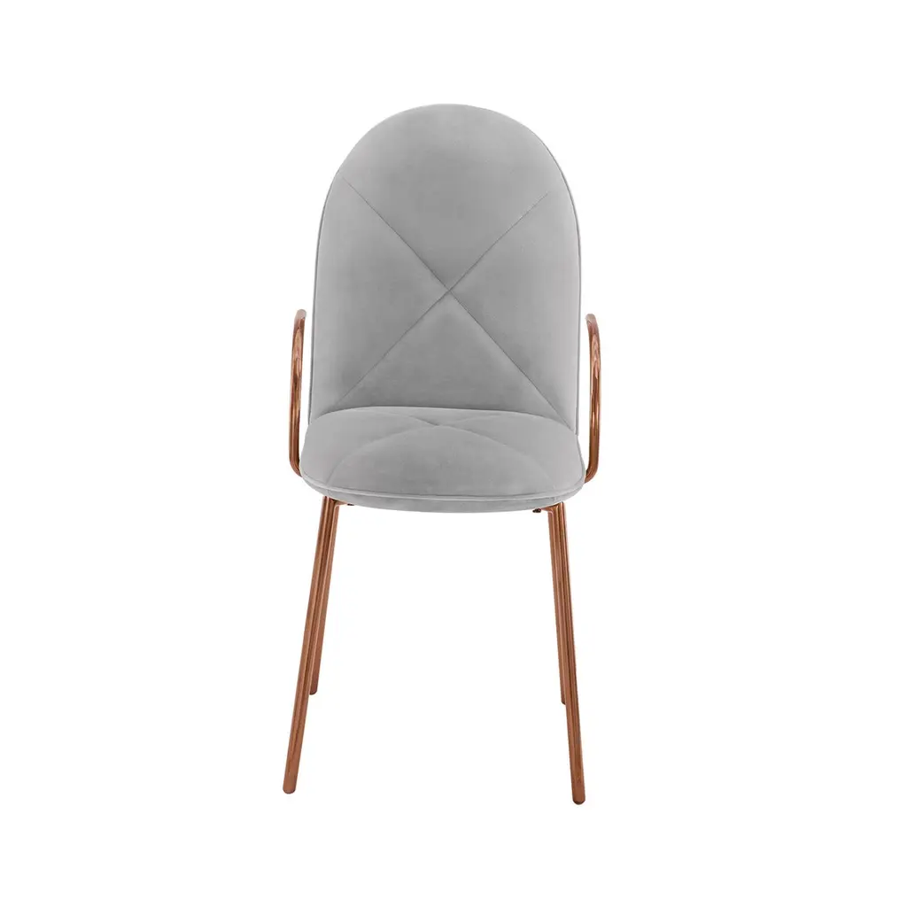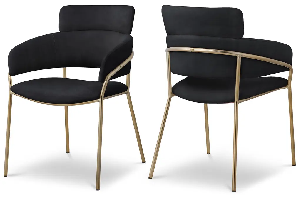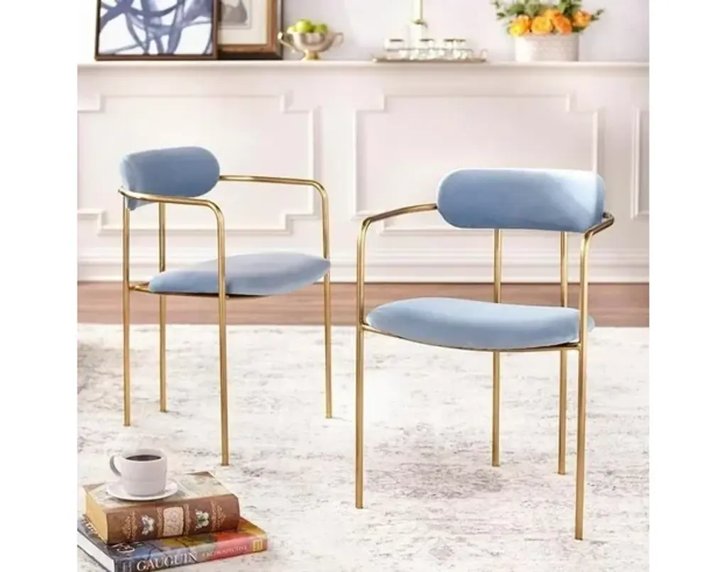 Set includes two (2) mid-century and modern glam style dining chairsCurved chair backs and arms for added comfortGold metal frame with seat and backs are upholstered in a soft plush velvetAssembled dimensions: 20.6' x 20" x 29.3"HAssemble required