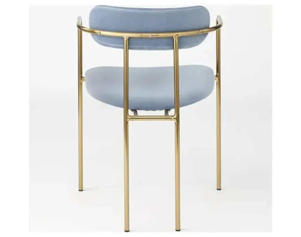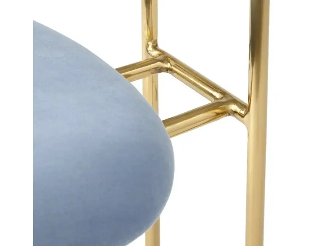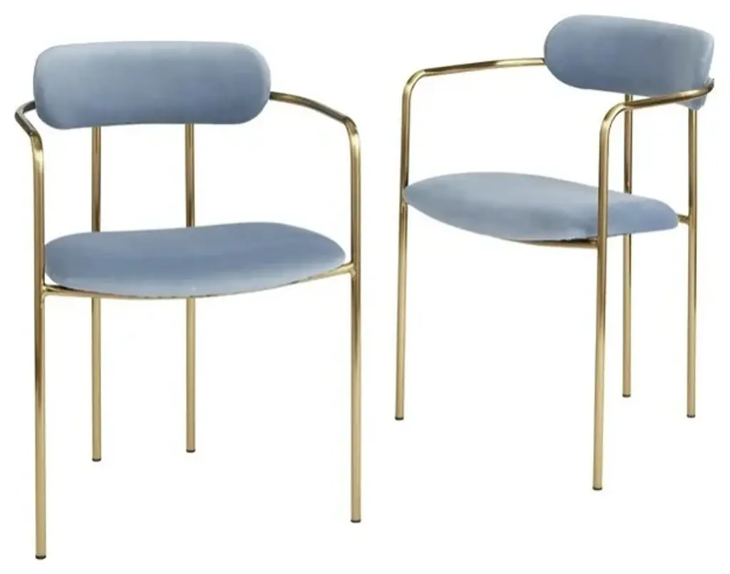 Set Of 2 Velvet Dining Armchairs With Gold Metal Frame And Open Back Design, Blue