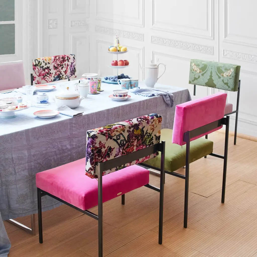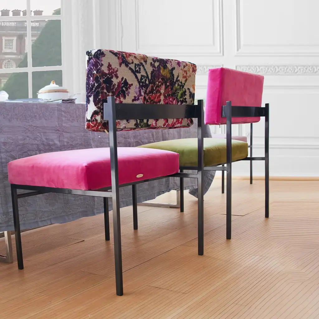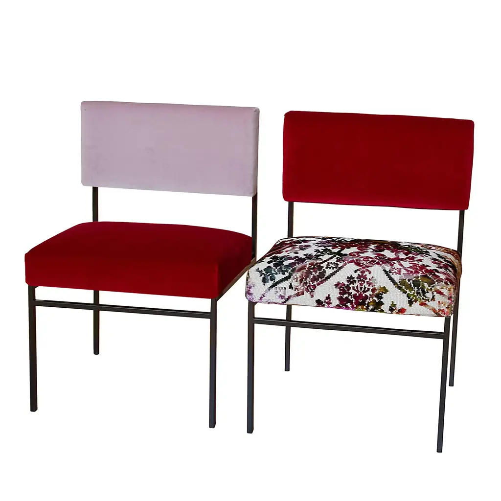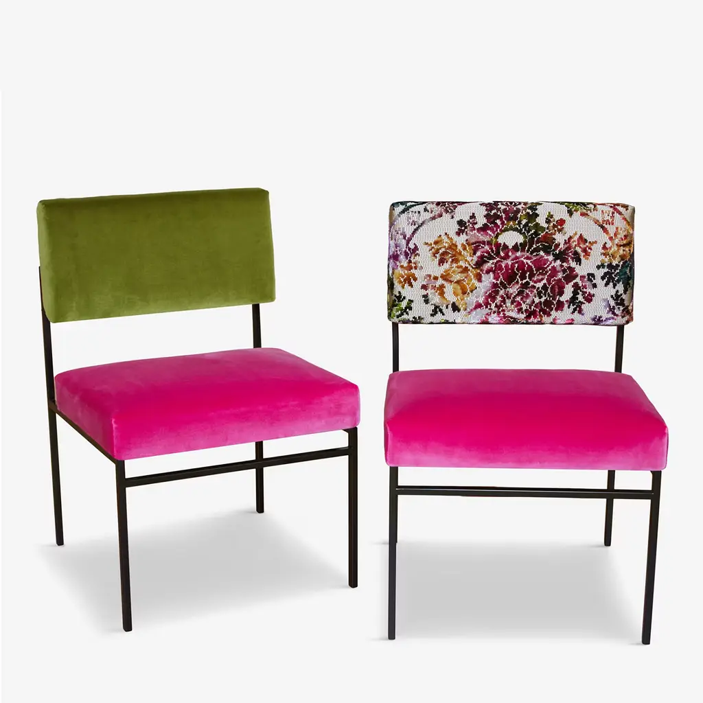 Flaunting a streamlined and unadorned silhouette, this exclusive chair exemplifies utmost comfort in its 50s-inspired aesthetic. Both the seats and the open backrests are padded with natural latex, goose down, and fresh cotton, covered in a selection of glamorous patterns. A bestseller chair among restaurant owners, this piece is 100% natural and plastic-free. Designed by Davide Barzaghi. Removable covers with zipper or button systems. Please ask the Concierge for further details.
